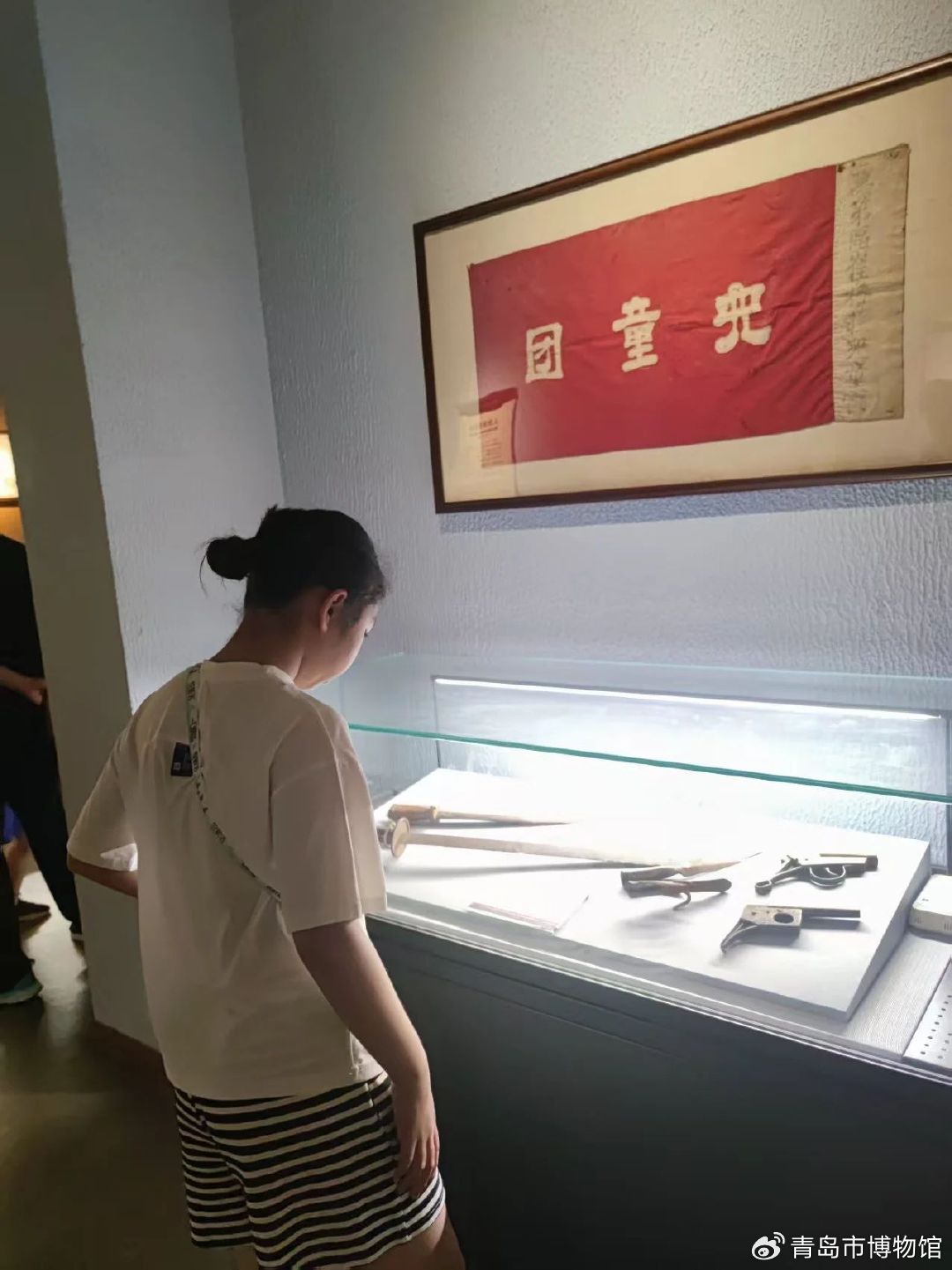 暑假,我和爸爸妈妈来到 参观,这张照片是妈妈给我拍的,我在用语音导览设备听取着这段历史。位置是在《青岛史话》第二部分“岁月回眸”。“讲述了青岛城市从清朝末年正式建置,历经德日强占,北洋军阀和国民党第一次统治,八年抗战,迎接解放的历史”。