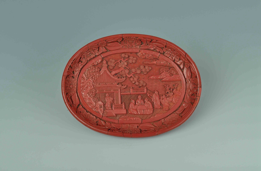 年代:明永乐 尺寸:口径22.5×17.2厘米,底径17.9×12.5厘米,高3.3厘米