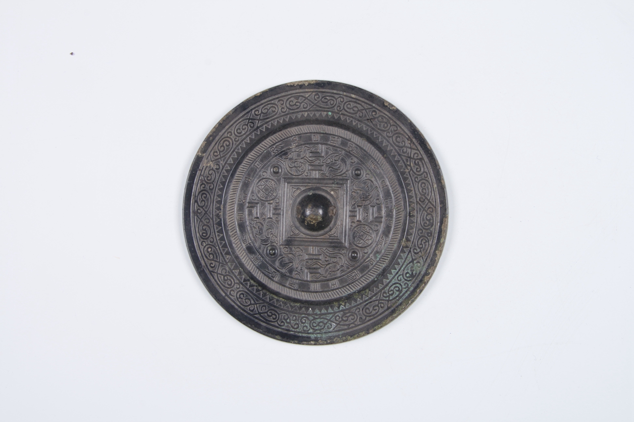圆形,圆钮,三线方格钮座,座外饰有规矩纹、乳状纹、“大泉五十”钱纹,并有禽兽纹环绕一周。镜缘内有铭文“汉有善铜出丹阳……”,镜缘上饰有锯齿纹、勾连纹。