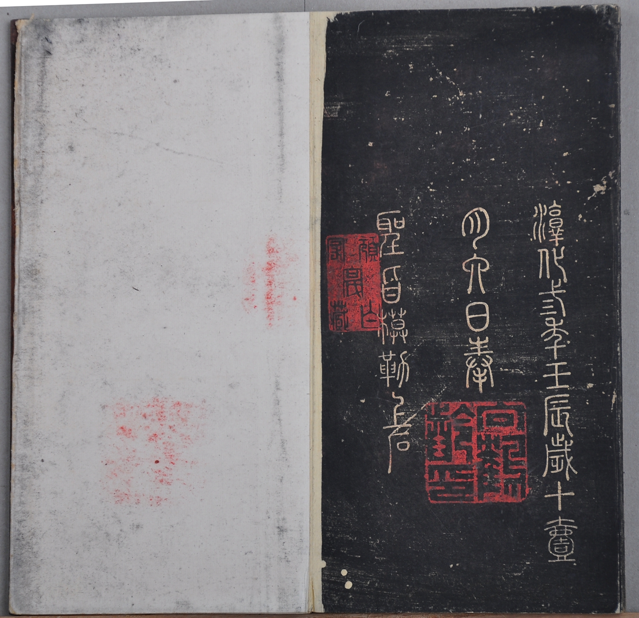 经考据比较,发现 拥有费甲铸本、肃府本、薛所蕴刻本等几个版本,部分有题跋、印章等珍贵信息。其中薛所蕴刻本历史上有著录,在我馆发现了实物;《淳化阁帖》薛氏补刻本最早记载于康熙杨宾《大瓢偶笔》卷六:顺治十七年,薛所蕴得卫源阁帖石,乃补刻二十九段,上有银锭扣,较肃府顾氏本俱胜。我馆藏薛刻本蝴蝶装,浓墨精拓,卷首钤“青岛学海精舍倪氏印”,帖尾附河阳薛氏刻跋。相较《阁帖》其他版本,薛刻本少有流传,甚为稀少,因此,此次文物普查在我馆发现的薛刻本实物对于《阁帖》的进一步研究具有重要价值。另一版本上钤“向鹤龄印”,有“贾似道印”(南宋)和“秋壑”(贾似道,号秋壑)刻印,与明顾从义本、潘允亮本相似,有可能是尚未发现的新版本。特别惊喜的是高头大本北宋刻《淳化阁帖》,虽仅存第九卷王献之书,蝴蝶装,卷首钤“钦昭敬藏”、“郑公乡单鄂园家宝藏”印。但帖边有“陈怀玉镌”, 旁钤“鄂园欣赏”、“勿落俗人手”印,后有宋荦刻跋(在宋荦的《筠廊二笔》中有记载),刻跋阐述了此拓本刻石的来历,曾得董其昌珍视,后因战乱遗失,康熙年间,宋荦得其复拓本,因笔画遒劲,精采奕奕,认为是北宋刻无疑,可见该拓本实为较难得的《阁帖》版本。宋荦刻跋后另有王功后书跋,书跋对该拓本进行了考据,并对缺失的文字进行了补全,充分表现了王功后对该拓本的珍视与肯定。宋荦(1634~1713)字牧仲,号漫堂、西陂、绵津山人,晚号西陂老人、西陂放鸭翁。河南商丘人。商丘雪苑六子之一,著名诗人,书画家、文物收藏家和鉴赏家。王功后,字弗矜,号复斋,山东高密人,清代著名画家、收藏家。该拓本经施安昌、尹一梅鉴赏,认为可能是海内仅存之版本,有待进一步的研究与考据。