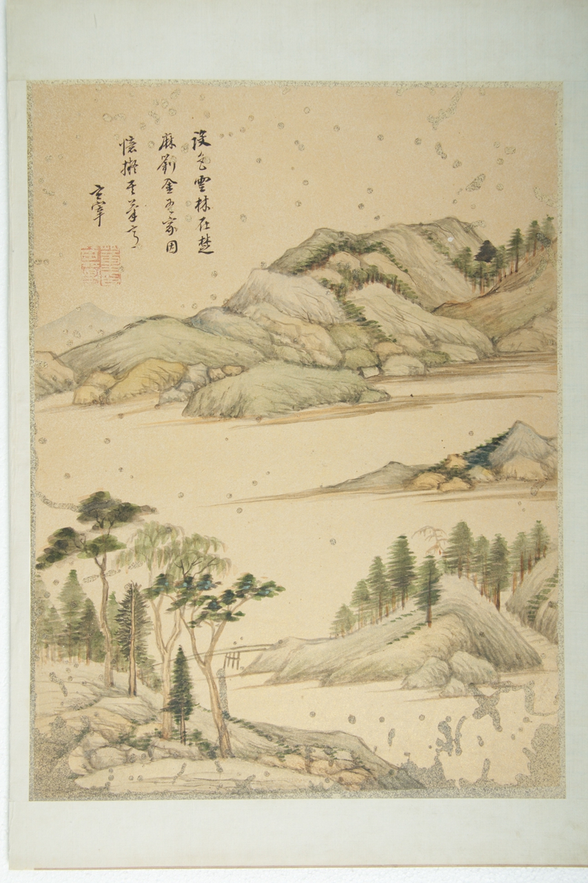 二、余所得沈司马公藏黄子久画二十幅,设色正自如此,又馆师韩宗伯家有良常馆图,后为飞凫易去常往来于怀,今日友人持子久画见示,因拈笔为此。玄宰。
