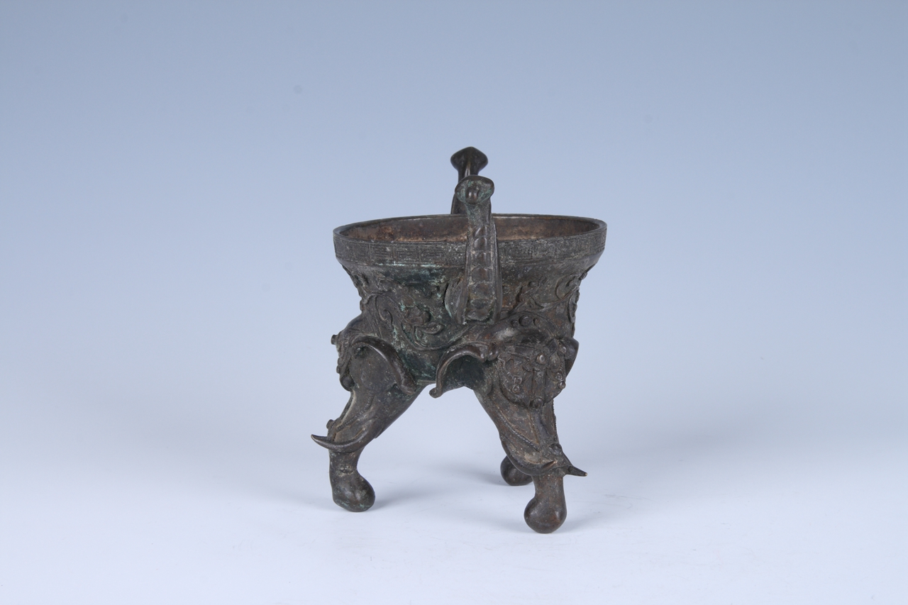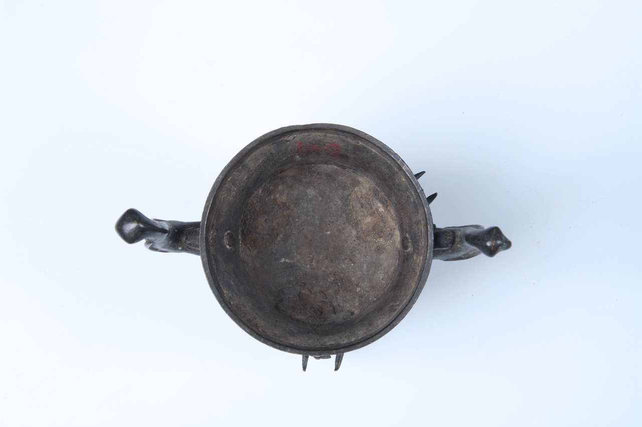 藏品年代:铜香炉藏品尺寸:口径10.5厘米、高13.7厘米藏品质地: