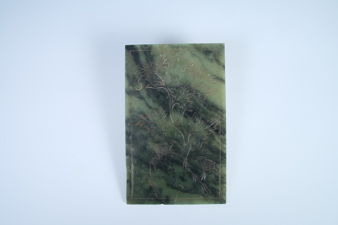 藏品年代:藏品尺寸:长20.5厘米、宽12.8厘米、高0.5厘米藏品质地:青玉