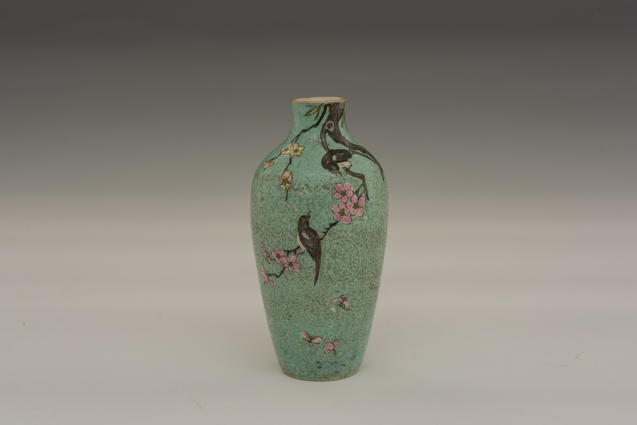 清乾隆绿地粉彩花鸟纹瓶