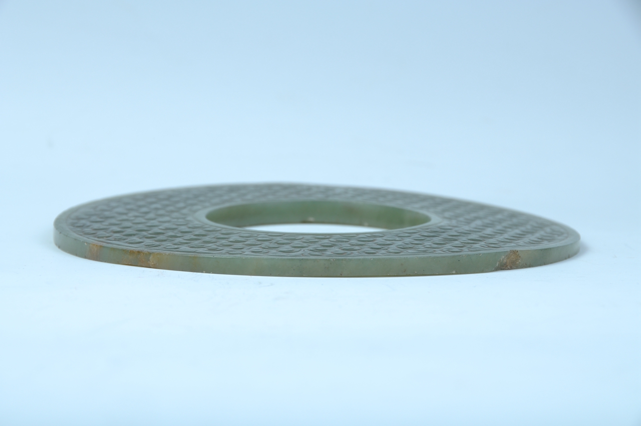 藏品年代:战国藏品尺寸:直径:14.6厘米,厚:0.5厘米藏品质地:碧玉