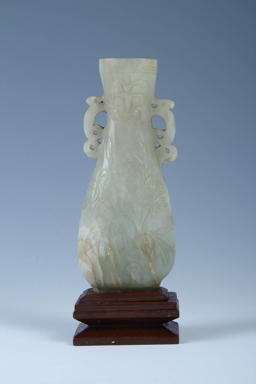 明青玉花叶纹双耳瓶