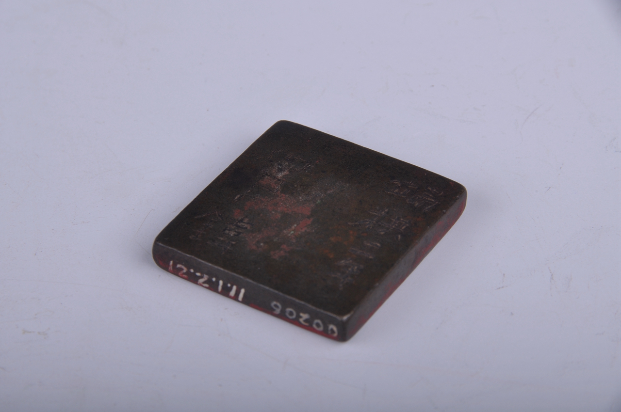 藏品年代:藏品尺寸:长3.7厘米,宽3.7厘米,高0.6厘米藏品质地: