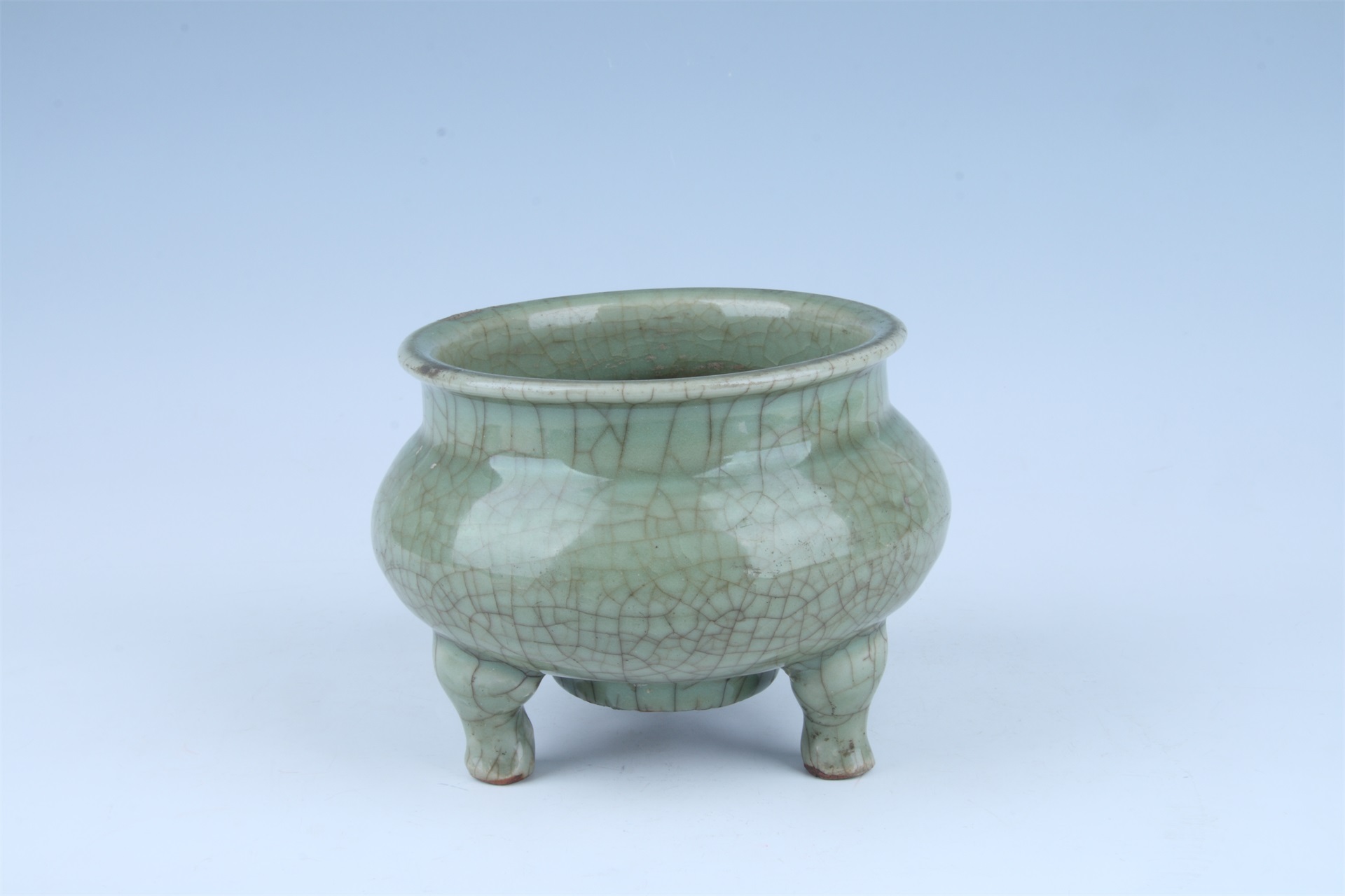 明龙泉窑开片纹三足炉