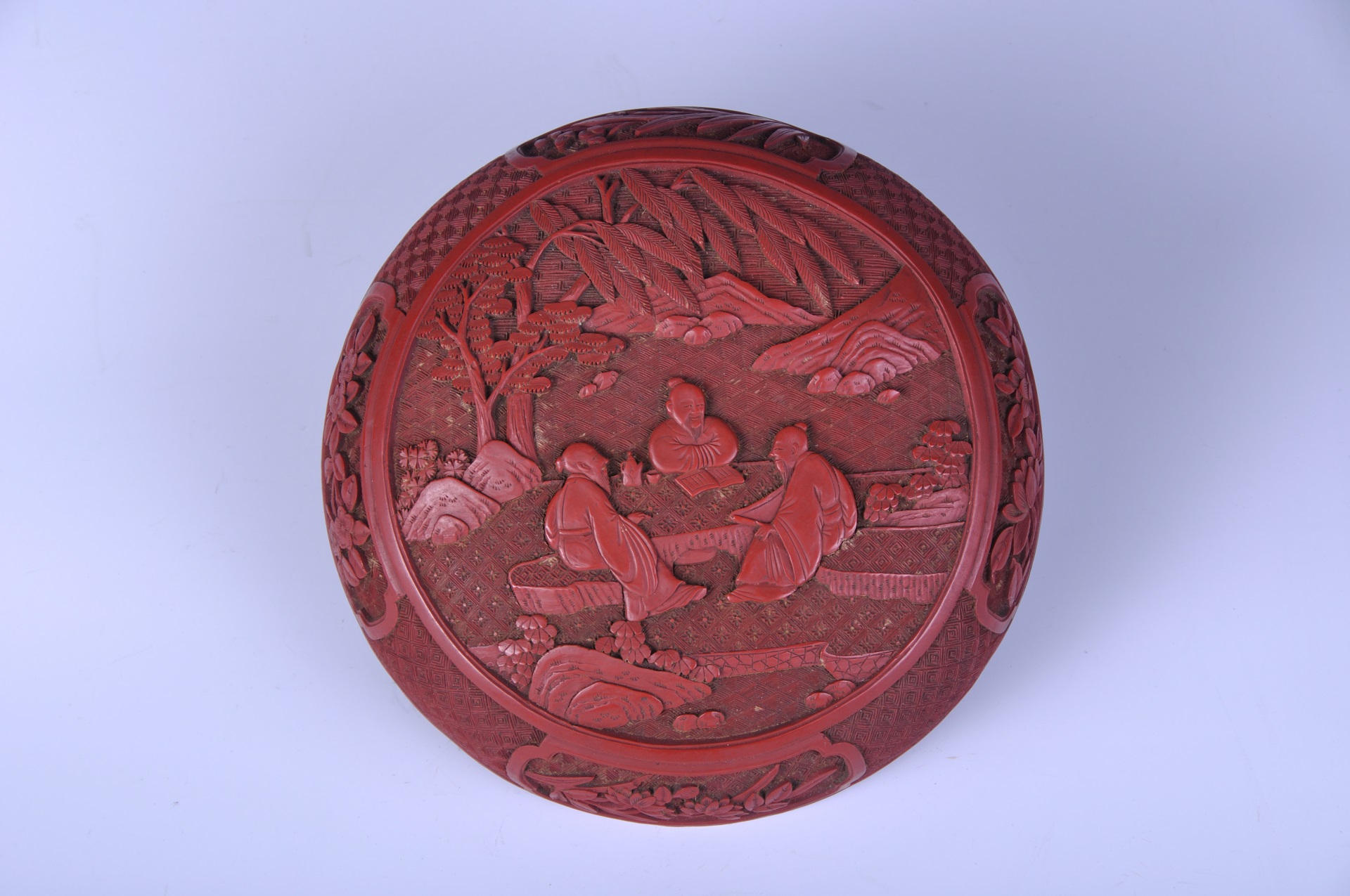 清剔红山水人物纹盒