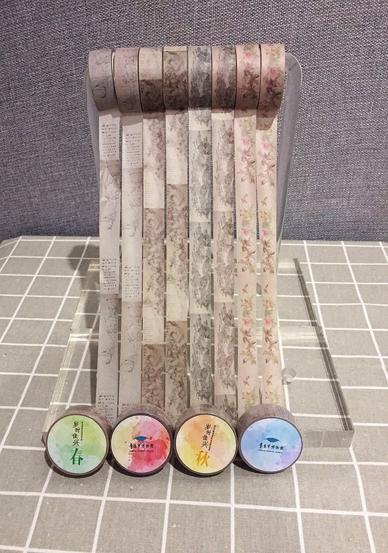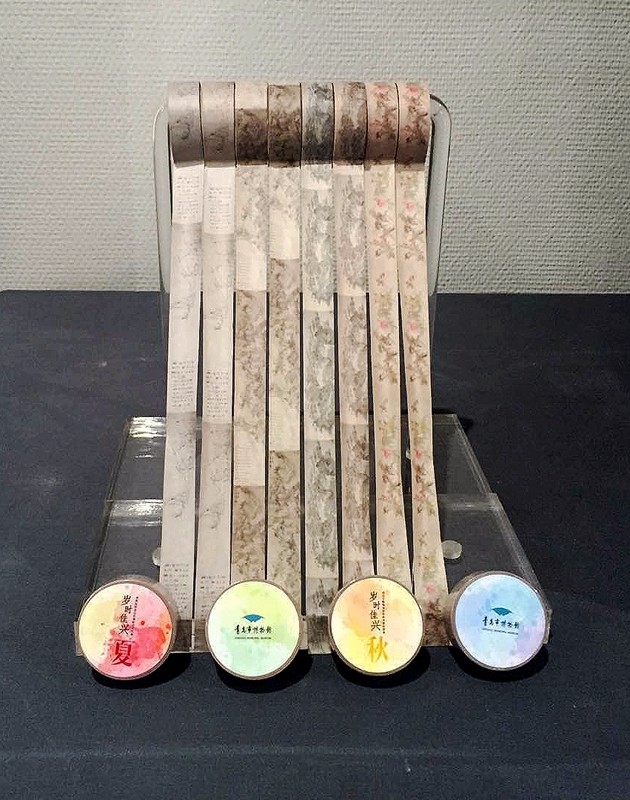 本产品一套四件,分别体现出春夏秋冬四季色彩,甄选能体现四季的我馆馆藏珍品,印制成纸胶带。其中,纸胶带之春款为《清无款绢本设色花卉卷》;夏款《清袁起绢本设色瞻园消夏图卷》;秋款《清沈宗敬绫本设色秋深度岭图卷》;冬款《清高凤翰纸本墨笔寒林归鸦图卷》。此产品可用于办公,学习和生活中记事所用,设计精美,做工优良,深受消费者喜爱。