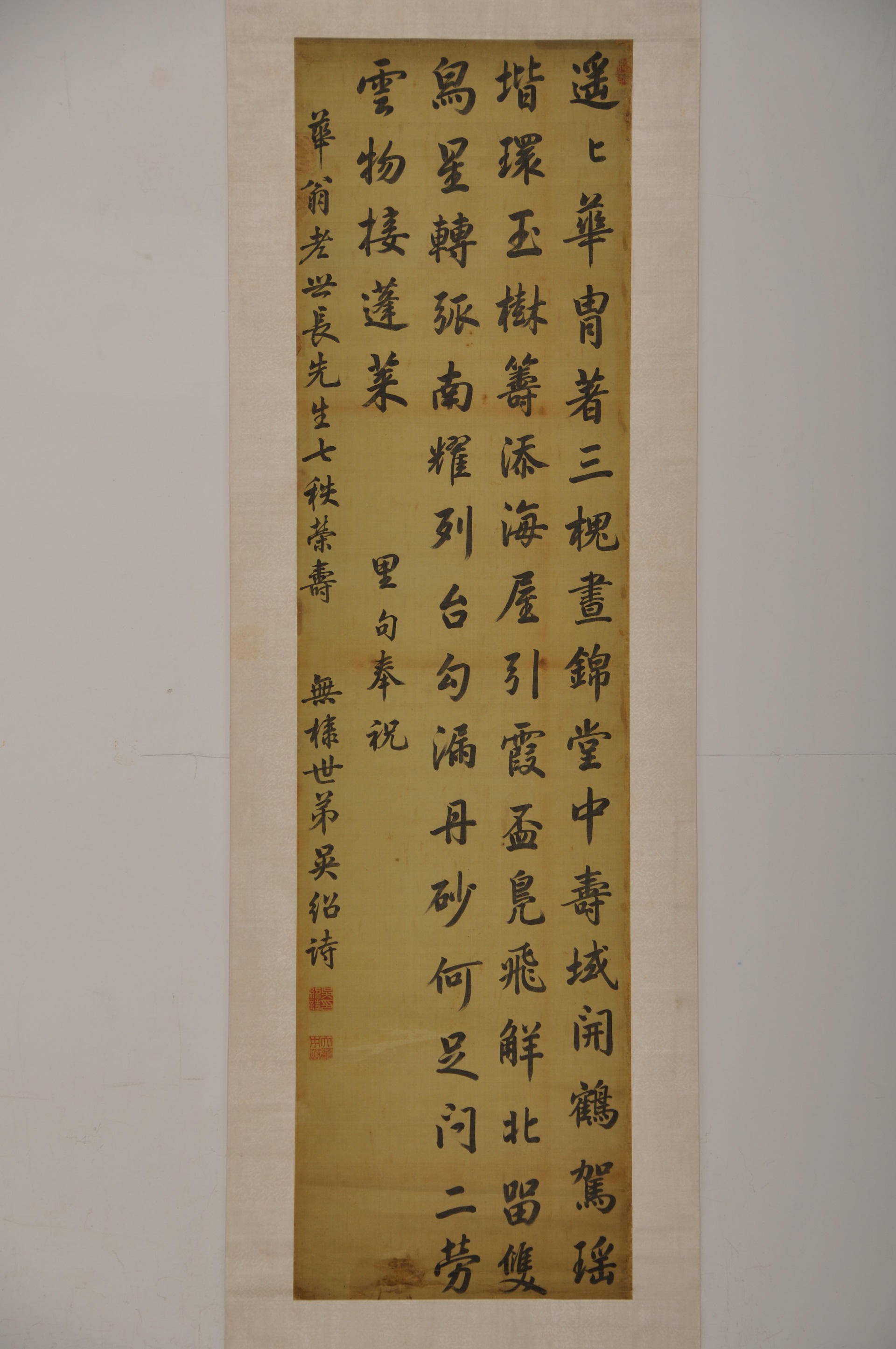 | 1519 | 清孙一致绫本行书轴 | 清 | 通长52 通宽52.5 | 查看 |