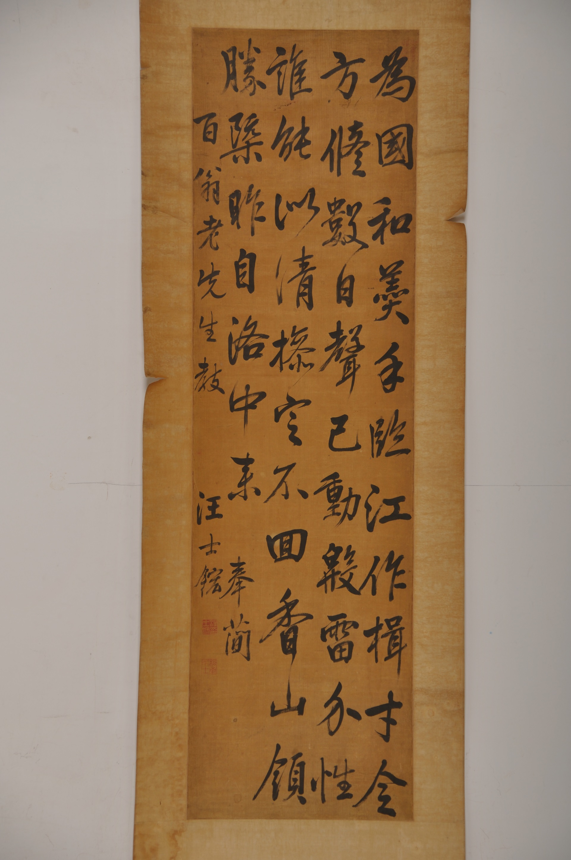 | 1524 | 清汪士鋐绫本行书立轴 | 清 | 通长163 通宽45.7 | 查看 |