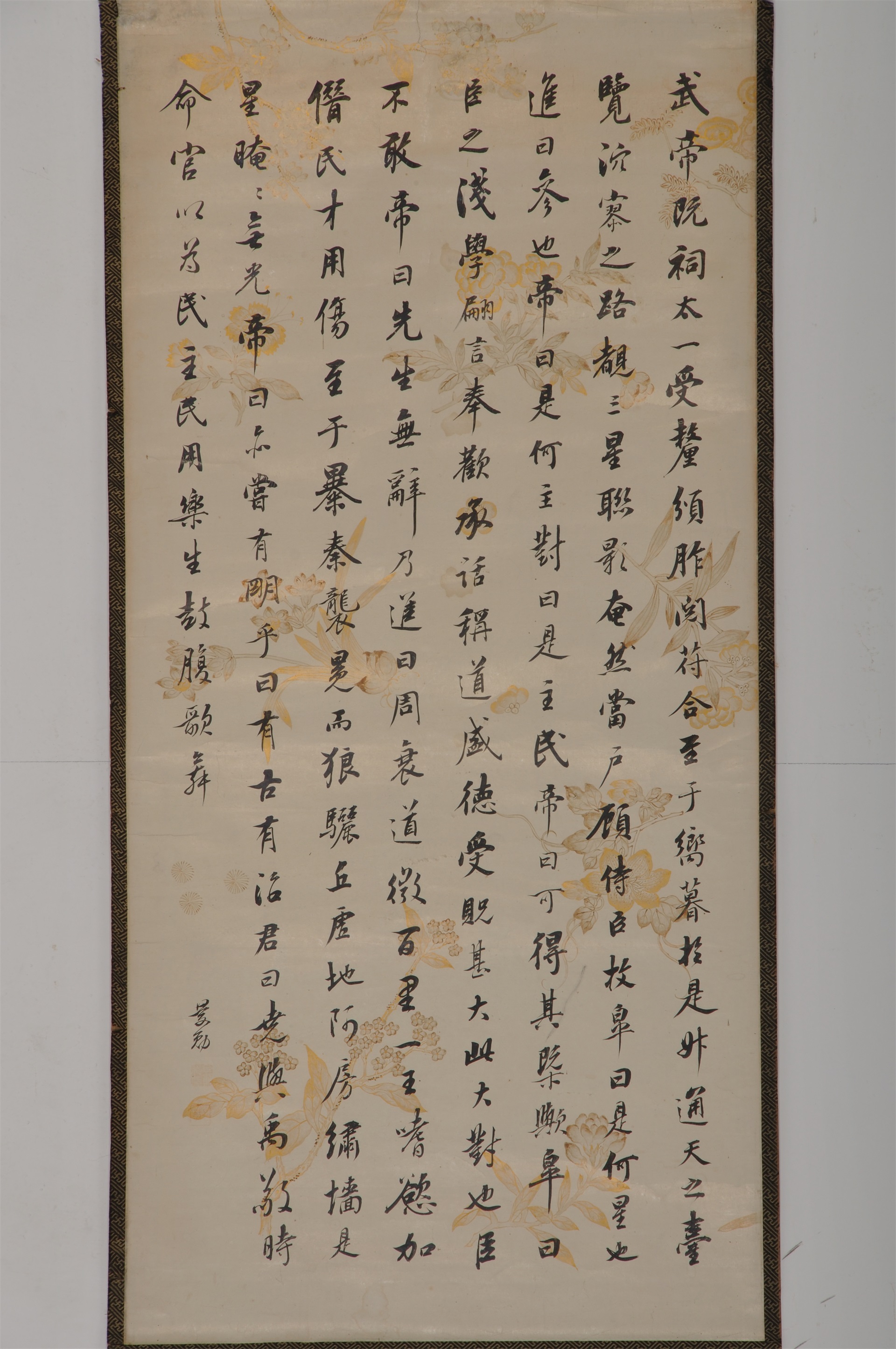 | 1642 | 清庆勋描金花底行书立轴 | 清 | 通长94.5 通宽44.5 | 查看 |