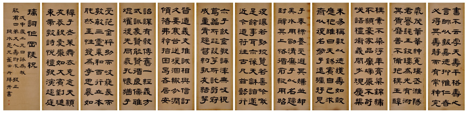 | 1662 | 清翟云升纸本隶书寿屏 | 清 | 通长189 通宽56.5 | 查看 |