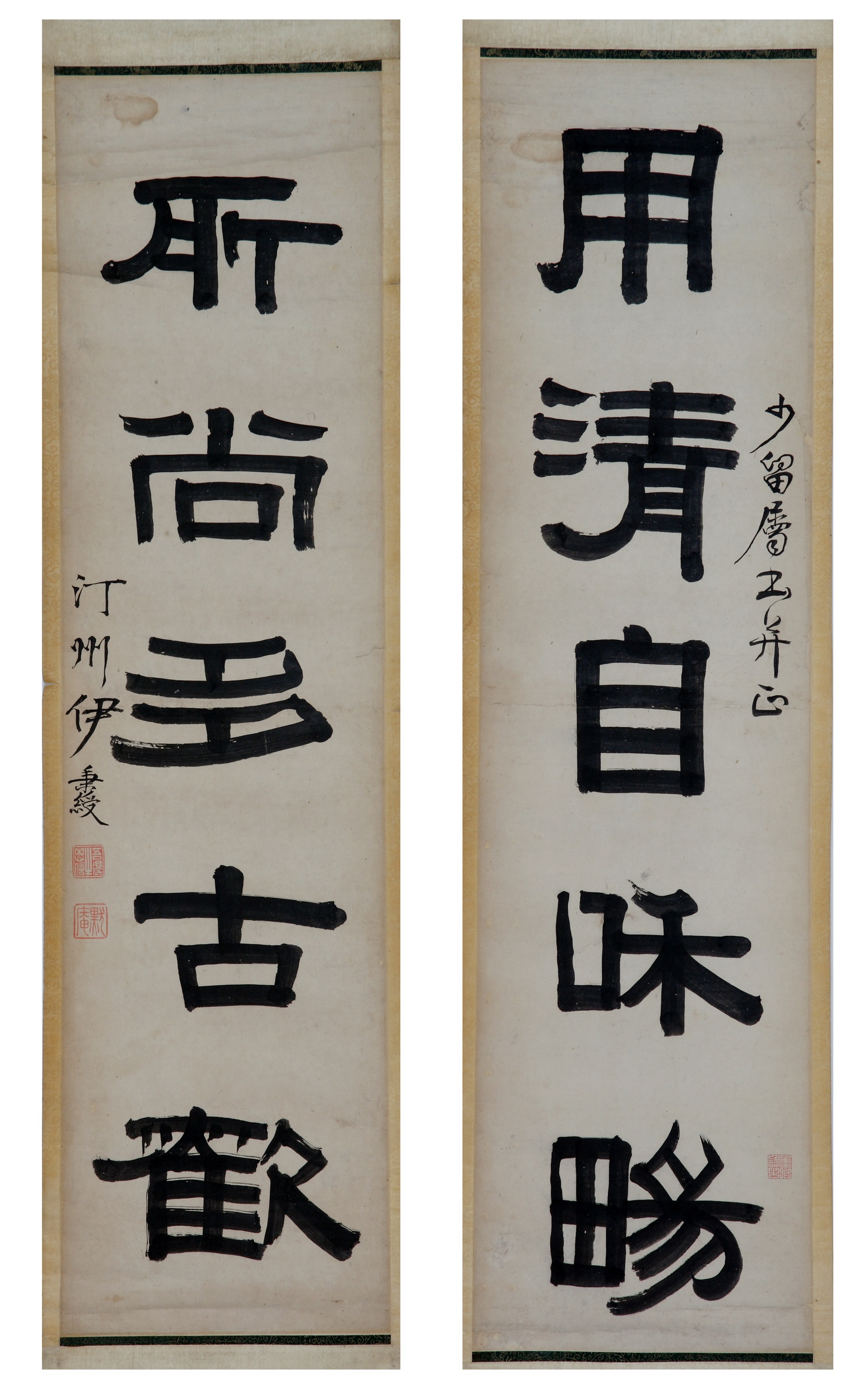 | 1820 | 清伊秉绶纸本隶书五言联 | 清 | 通长126 通宽33 | 查看 |