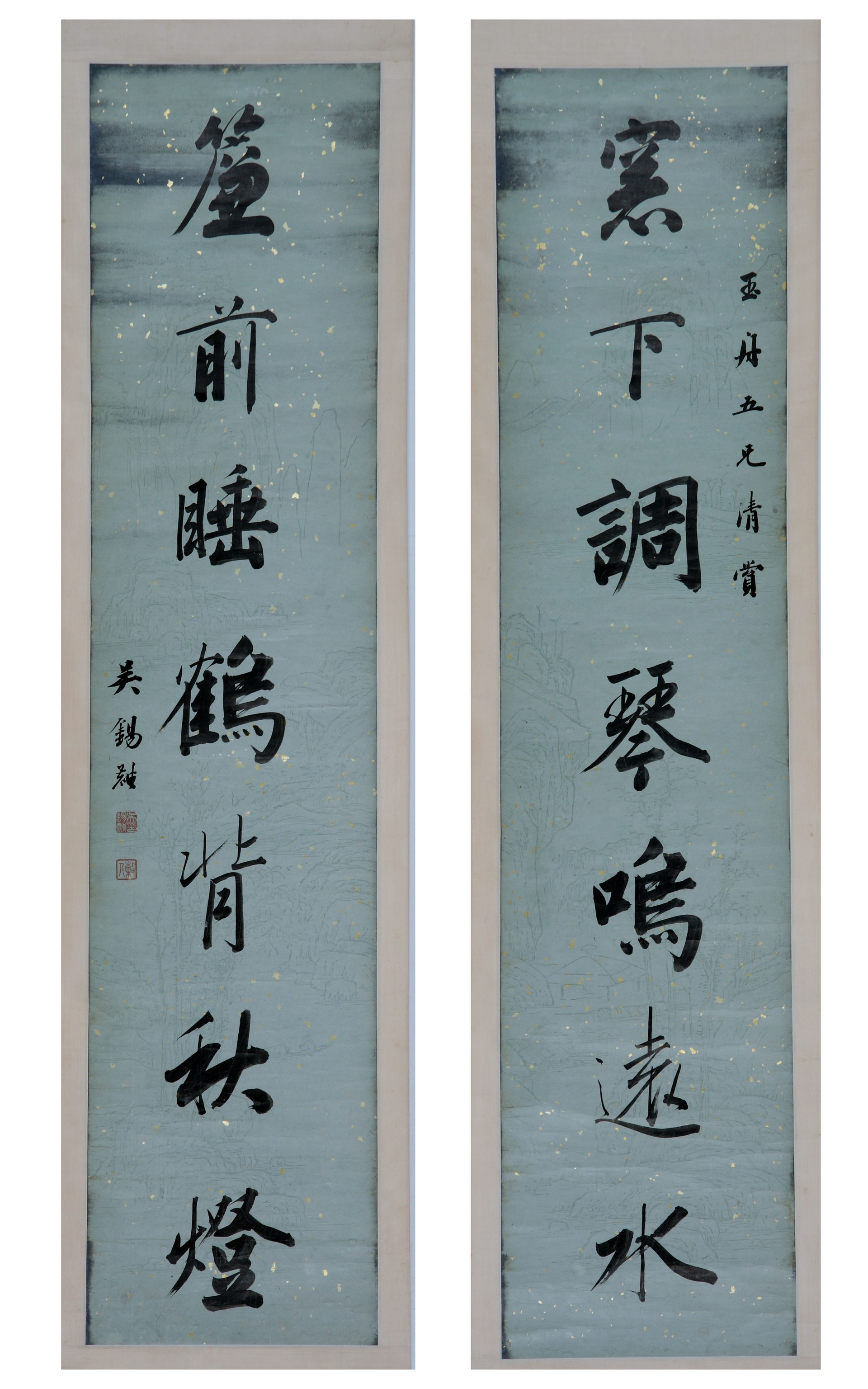 | 1819 | 清何凌汉描金笺行书五言联 | 清 | 通长122.5 通宽29.5 | 查看 |