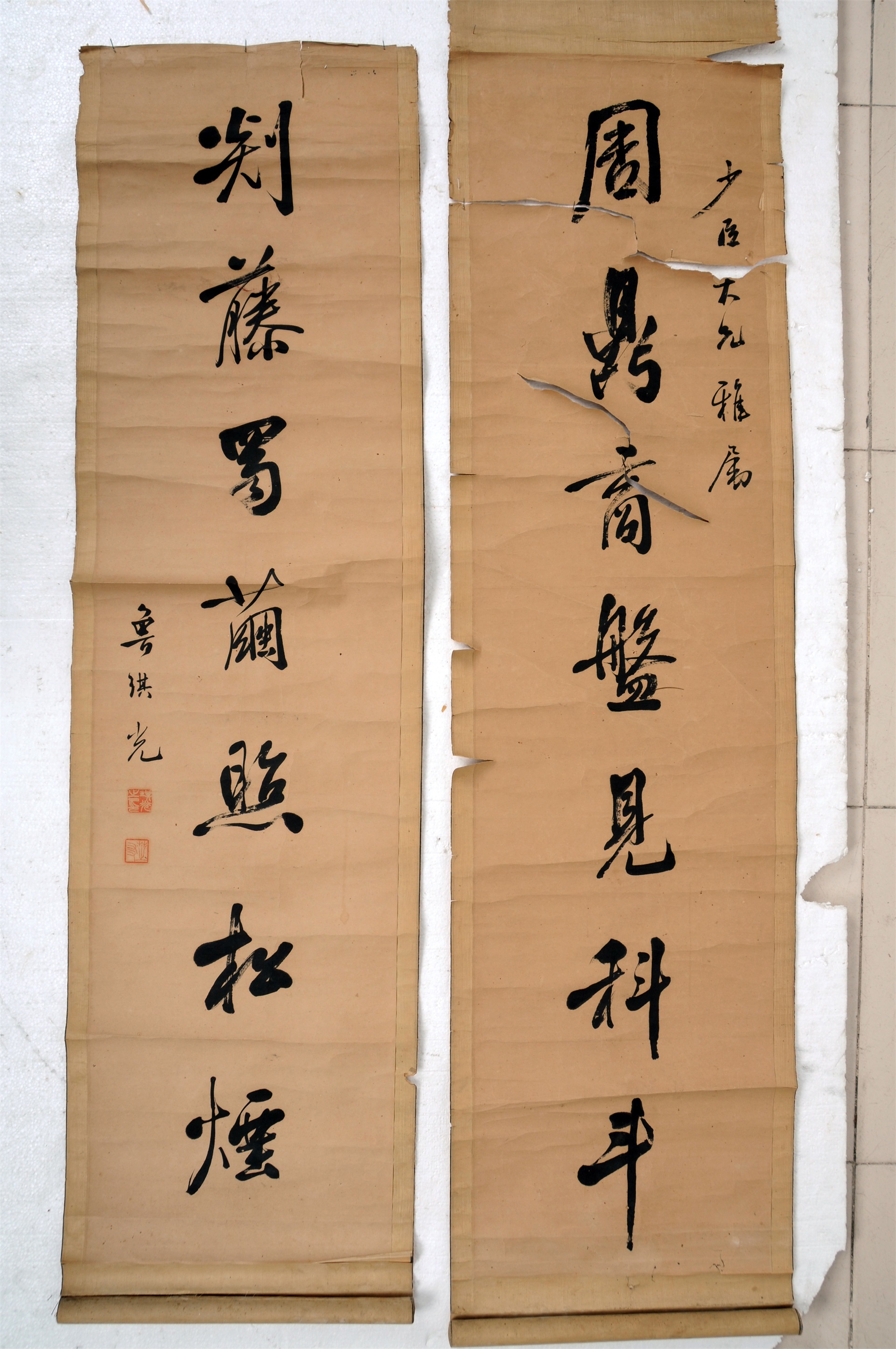 | 1830 | 清罗振玉纸本甲骨七言联 | 清 | 通长133 通宽31 | 查看 |