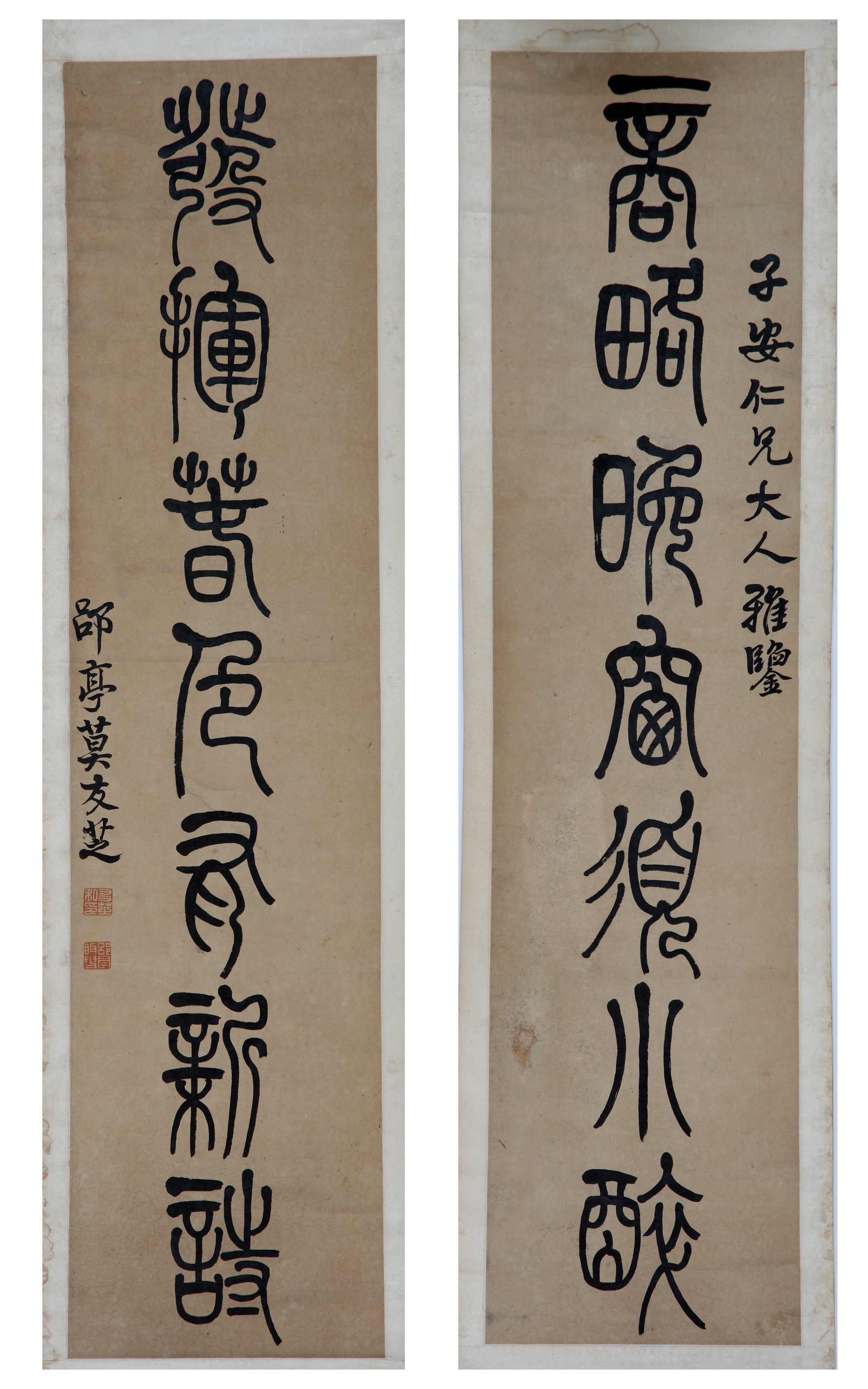 | 1829 | 清莫友芝纸本篆书七言联 | 清 | 通长124 通宽29.3 | 查看 |