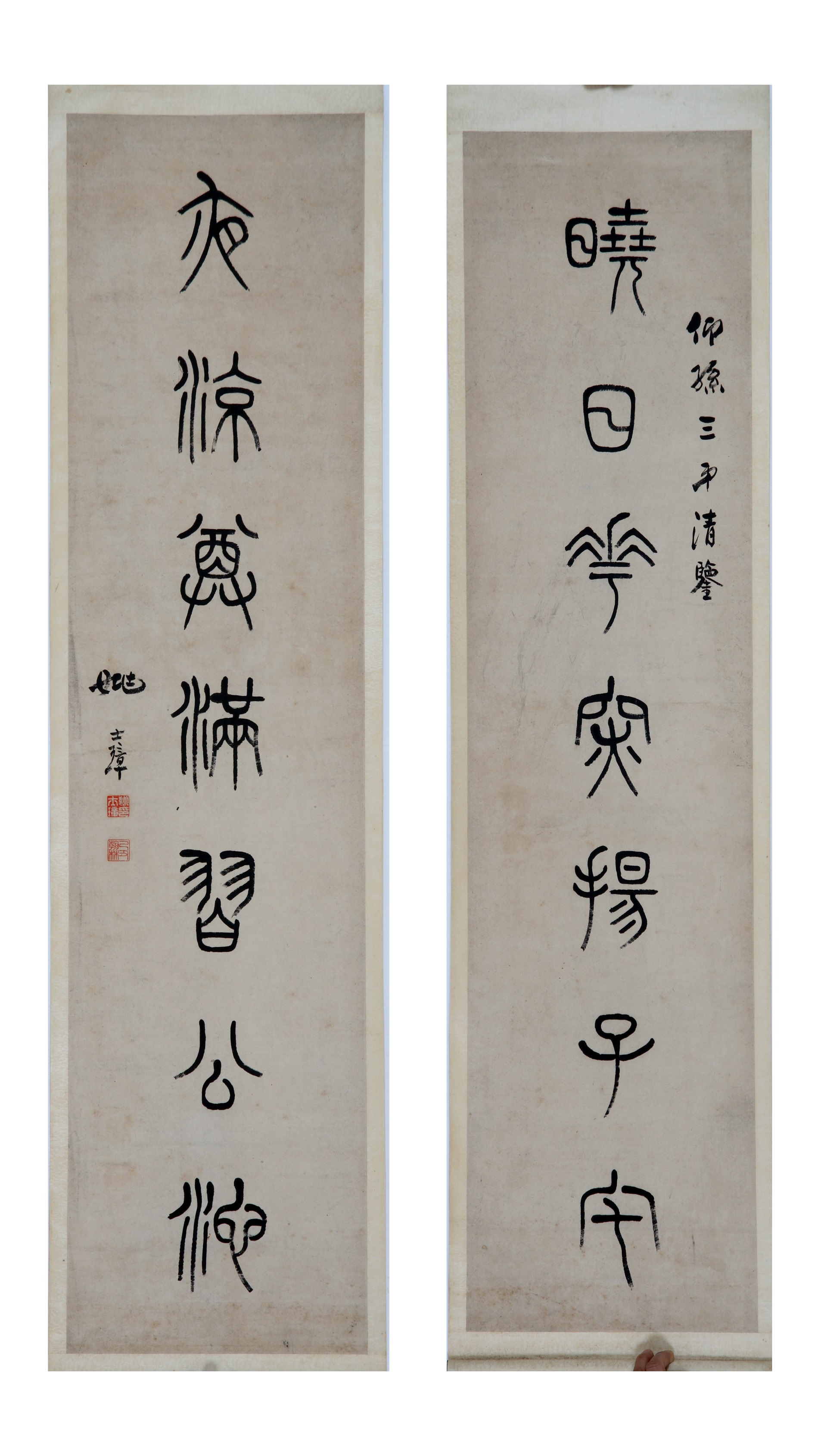 | 1843 | 清姚士璋纸本篆书七言联 | 清 | 通长134.5 通宽32.5 | 查看 |