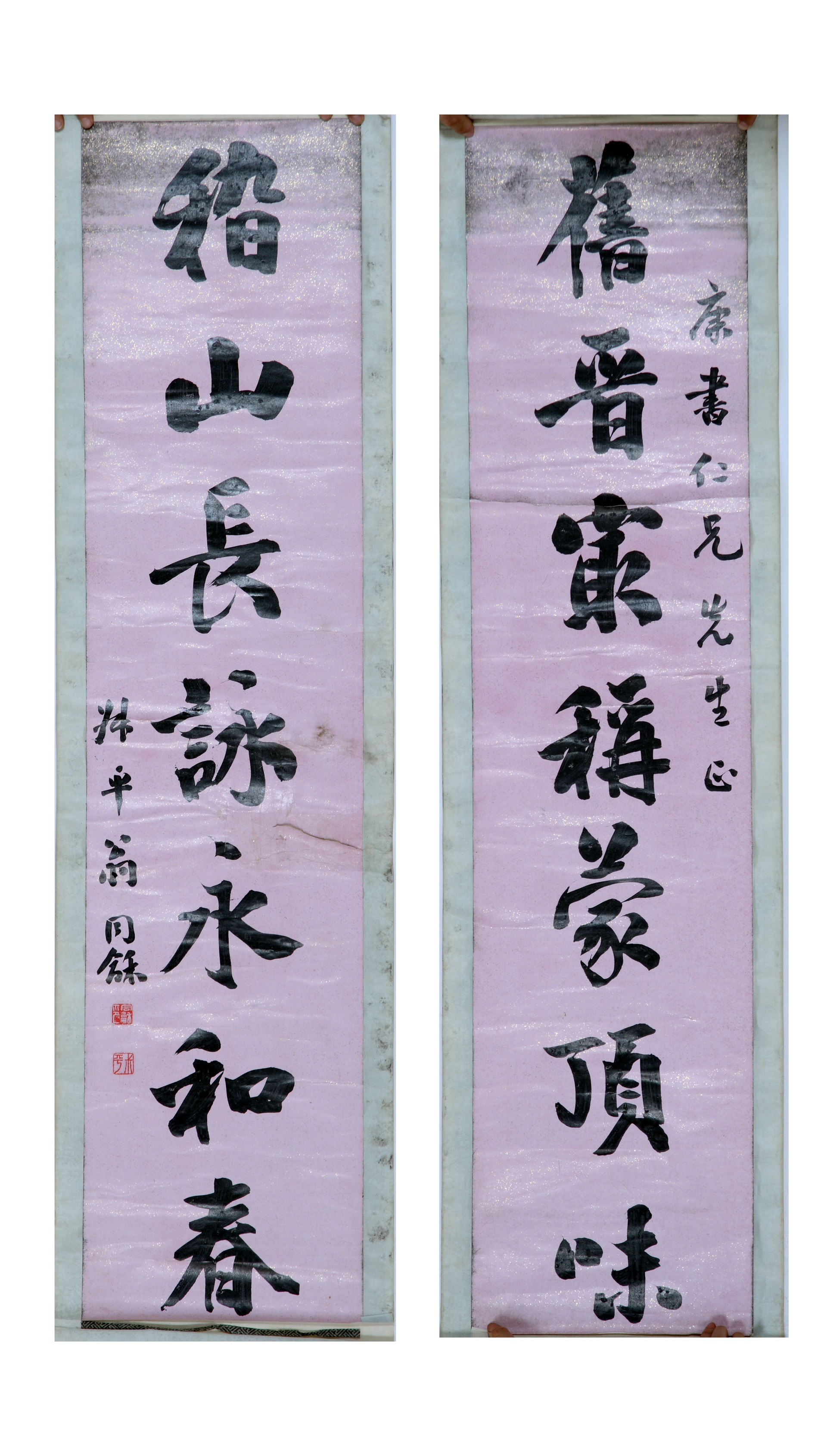| 1845 | 清翁同龢桃红笺行书七言联 | 清 | 通长128 通宽29.5 | 查看 |