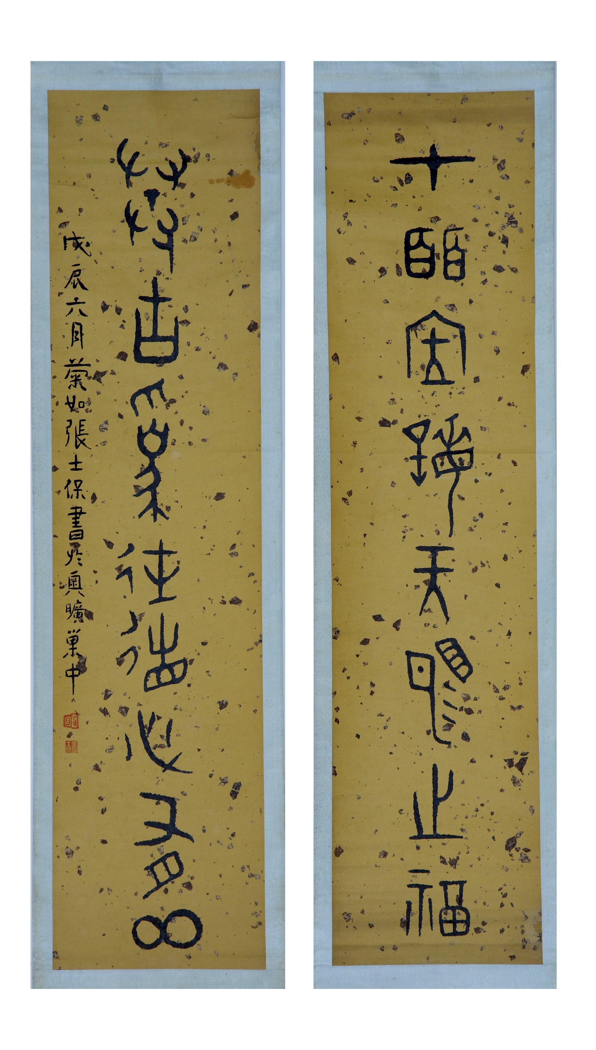 | 1893 | 清张士保黄洒金笺钟鼎八言联 | 清 | 通长116.3 通宽28 | 查看 |