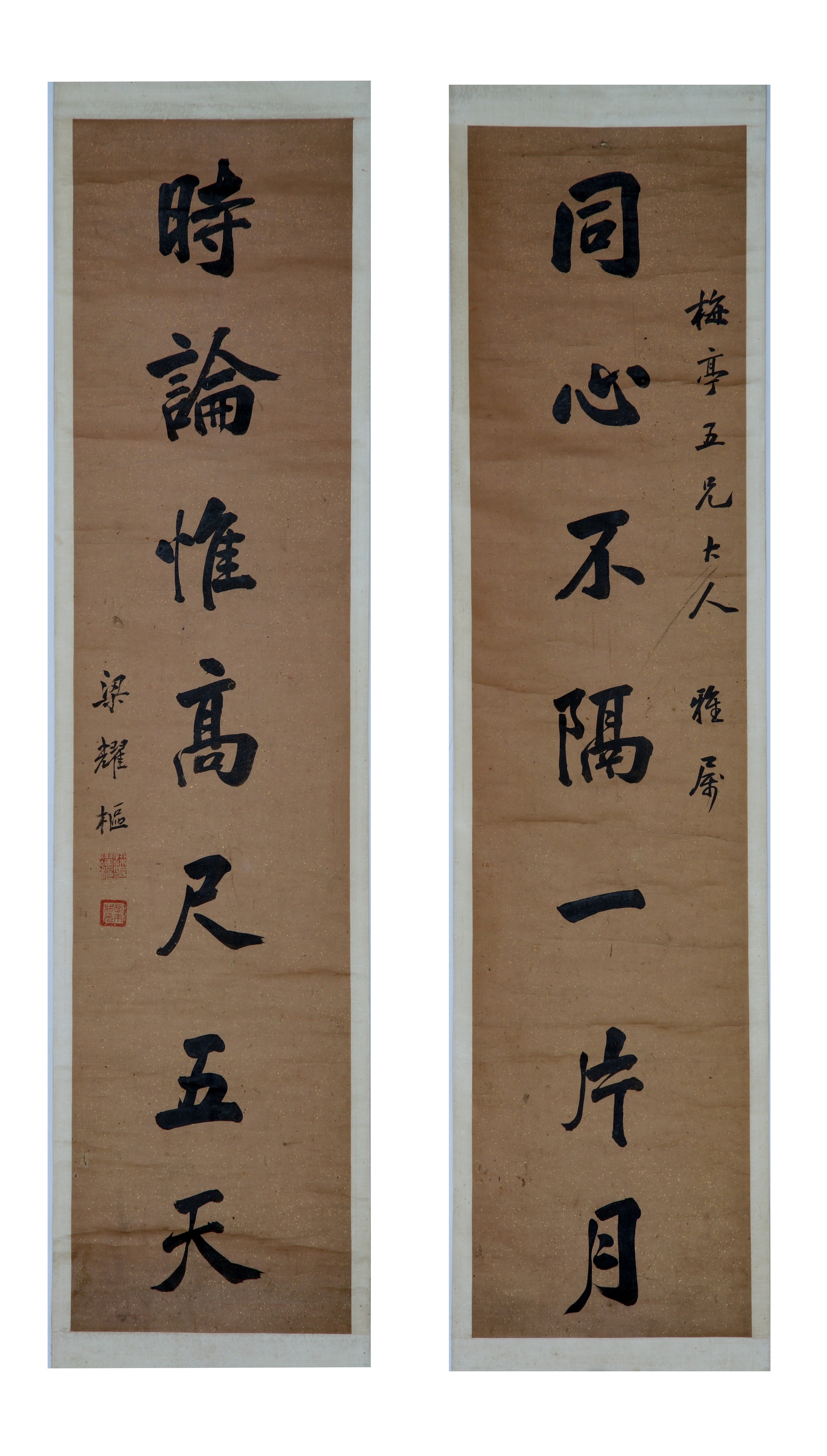 | 1896 | 清梁耀枢冷金笺行书七言联 | 清 | 通长129 通宽29.8 | 查看 |