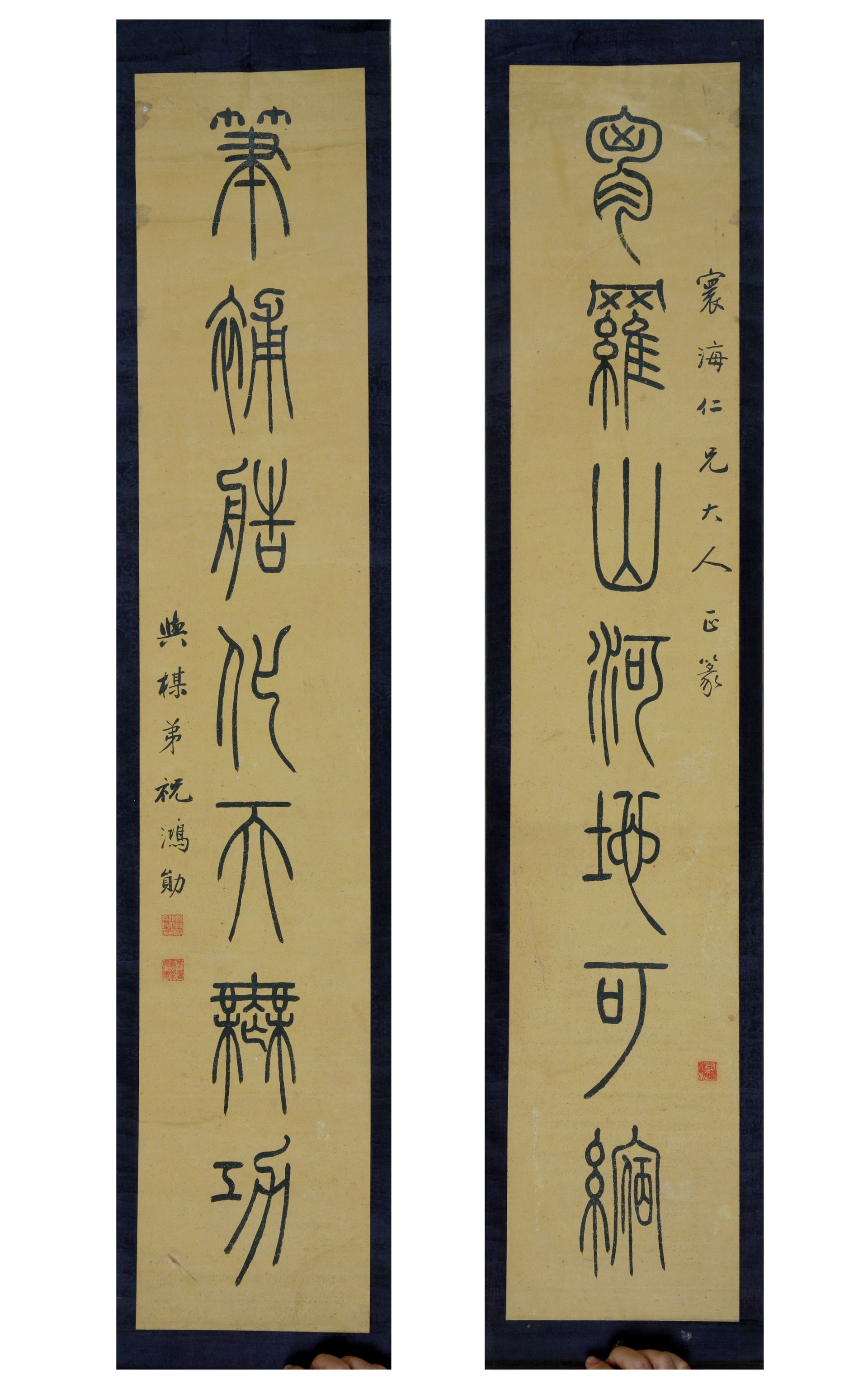 | 1965 | 清祝鸿勋黄笺本篆书七言联 | 清 | 纵118 横21.7 | 查看 |