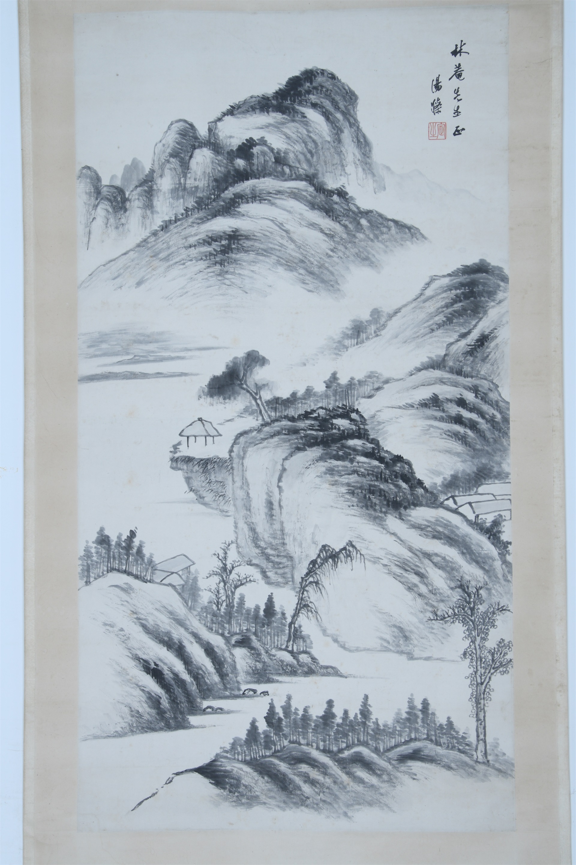 | 2134 | 清至民国汤涤纸本墨笔山水中堂 | 清至民国 | 通长146.5 通宽78.3 | 查看 |