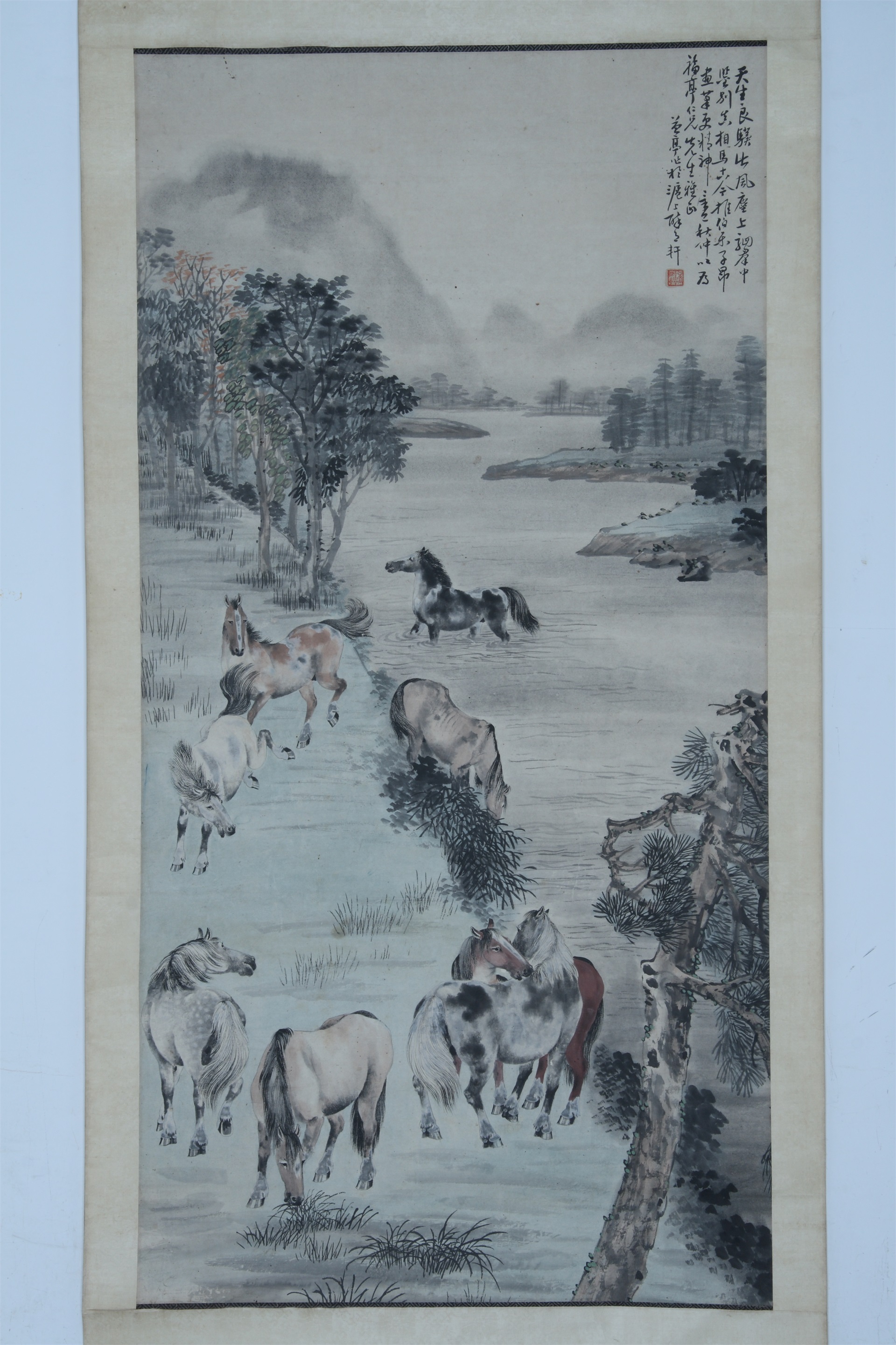 | 2164 | 清至民国李益亭纸本设色八骏图中堂 | 清至民国 | 通长131.3 通宽66.5 | 查看 |