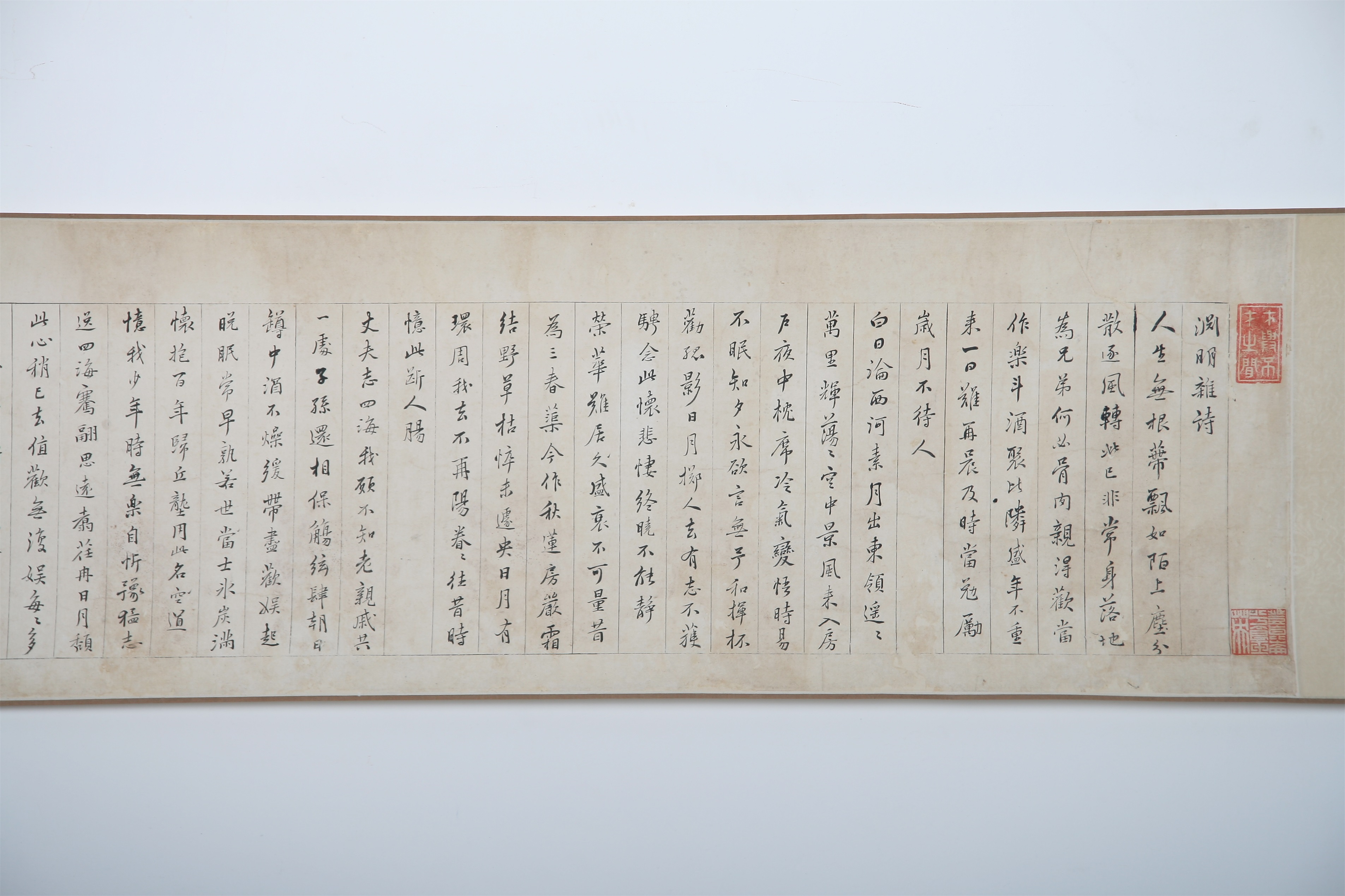 | 218 | 明万历二十八年王孟煦纸本行书渊明杂诗卷 | 明 | 通长30.8 通宽293 | 查看 |