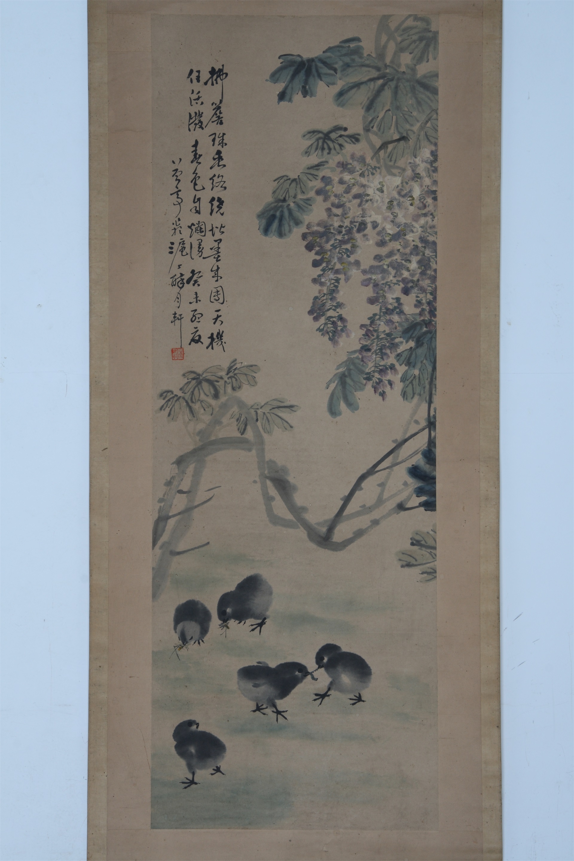 | 2246 | 清至民国李益亭纸本设色藤萝小鸡立轴 | 清至民国 | 通长114 通宽40 | 查看 |