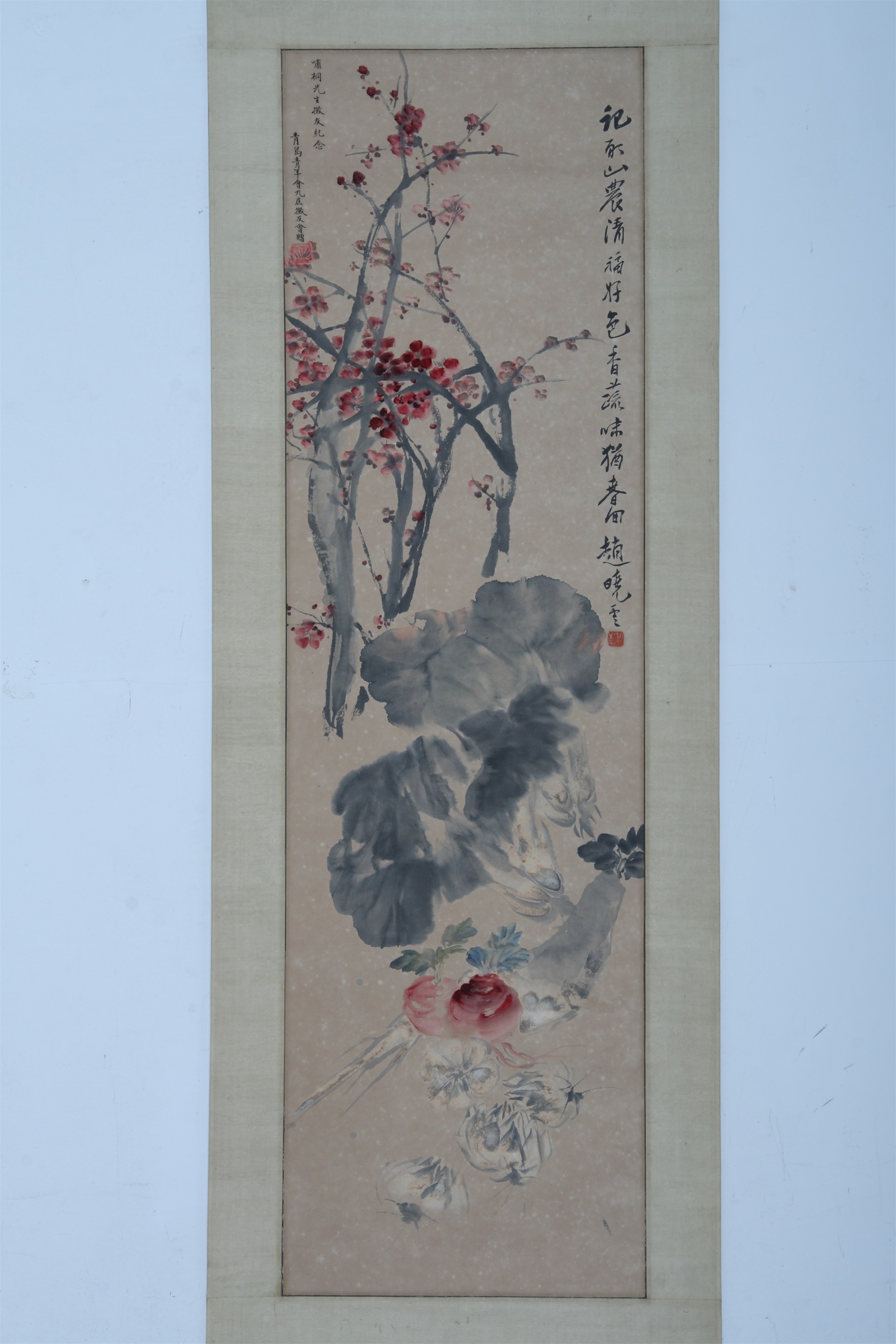 | 2359 | 二十世纪早中期赵晓云纸本设色梅花树果立轴 | 公元20世纪 | 通长115 通宽33.5 | 查看 |