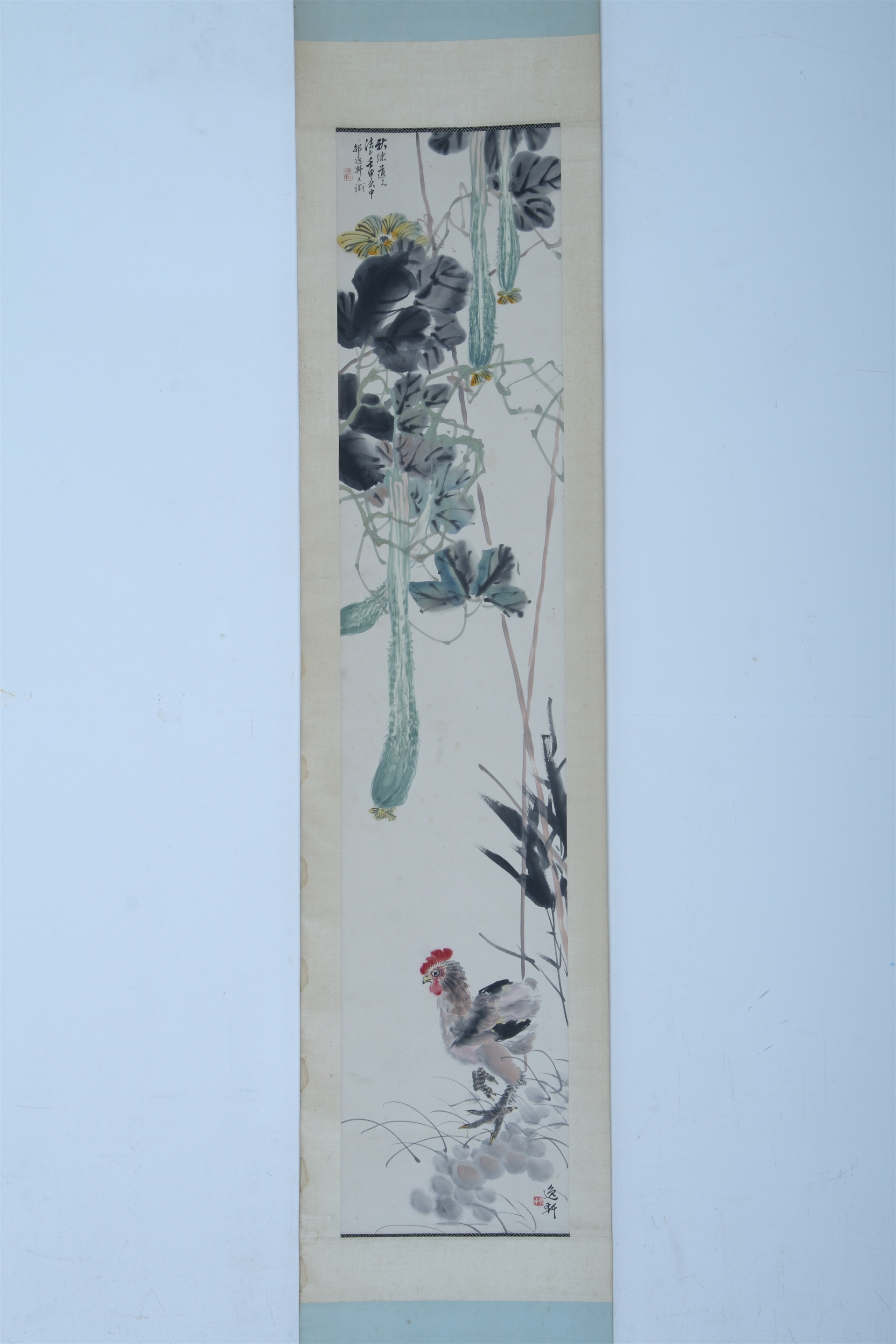 | 2375 | 清至民国邵逸轩纸本设色丝瓜雏鸡立轴 | 清至民国 | 通长135 通宽28 | 查看 |
