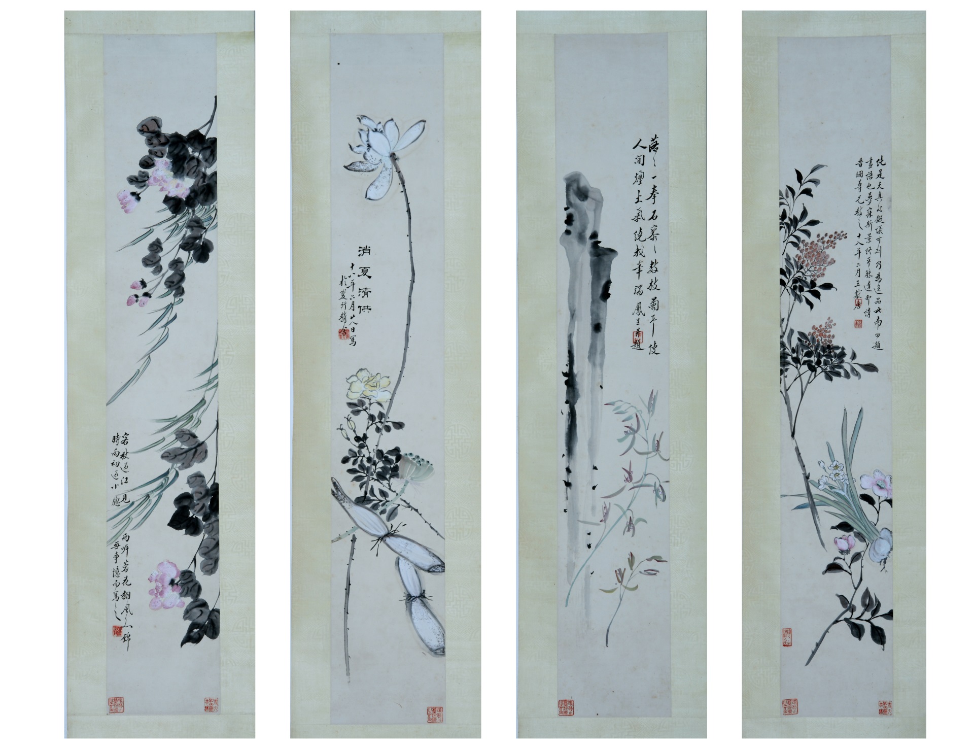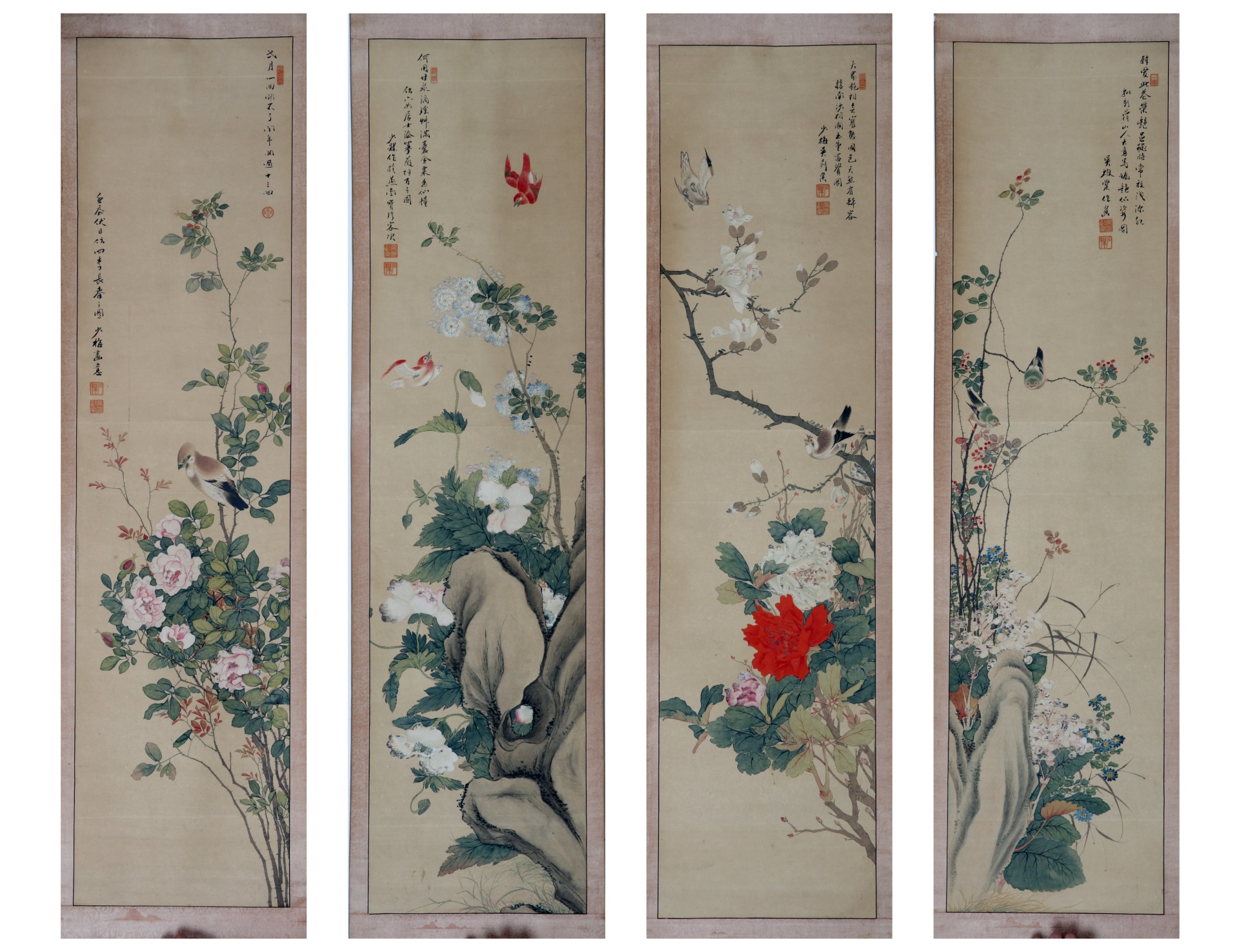 | 2446 | 清至民国王雪涛纸本设色花鸟屏 | 清至民国 | 通长130.3 通宽32 | 查看 |