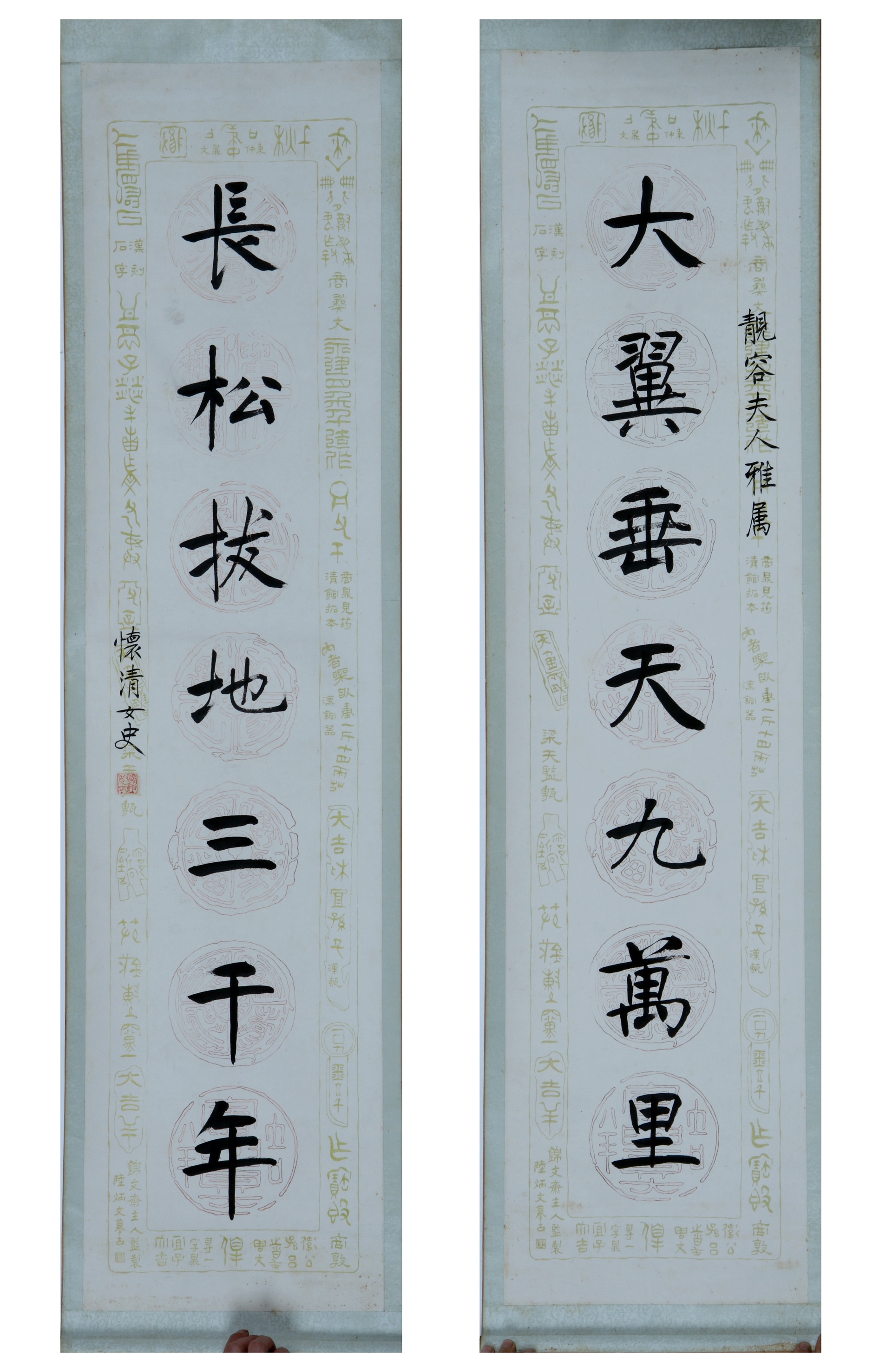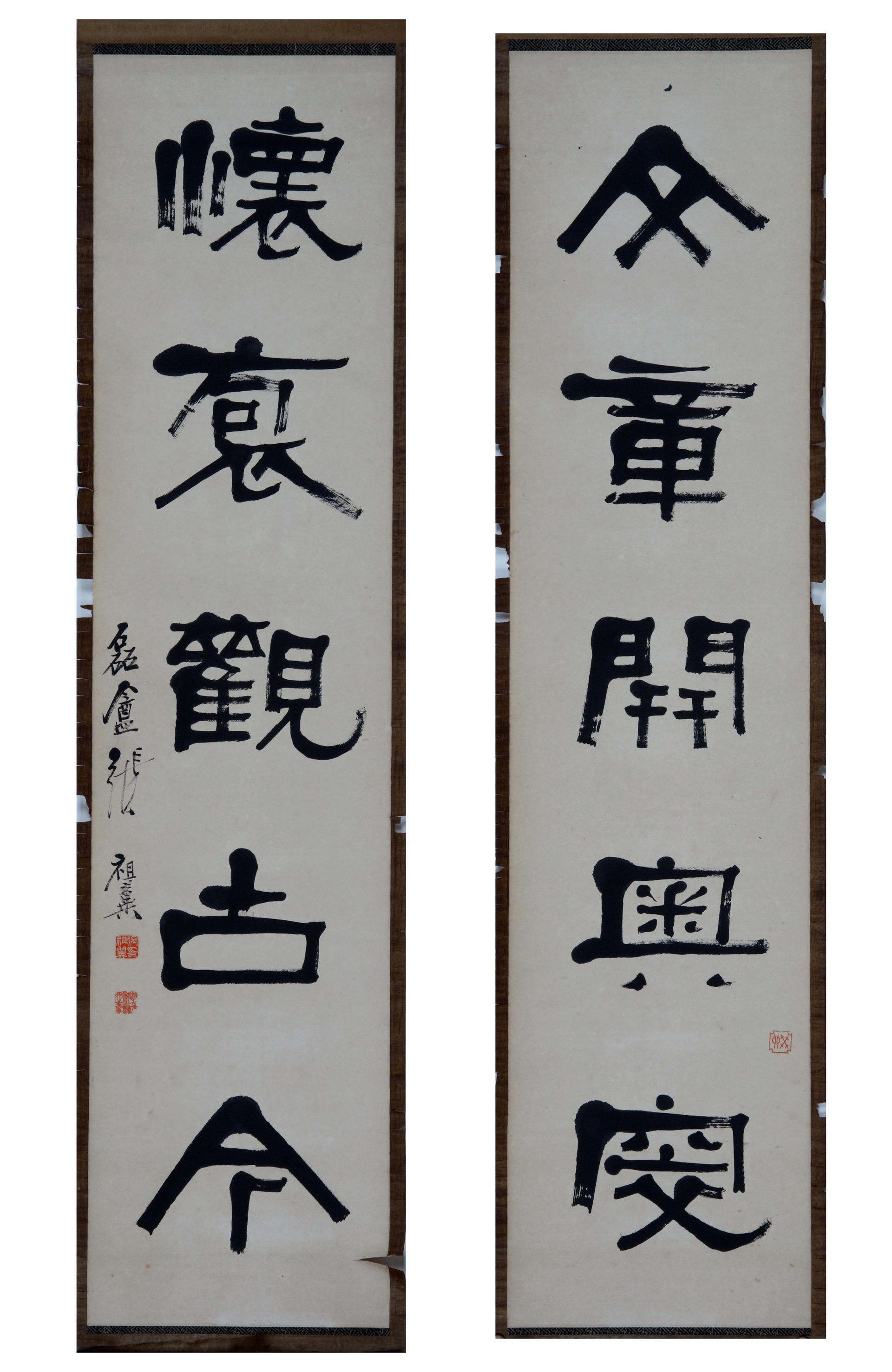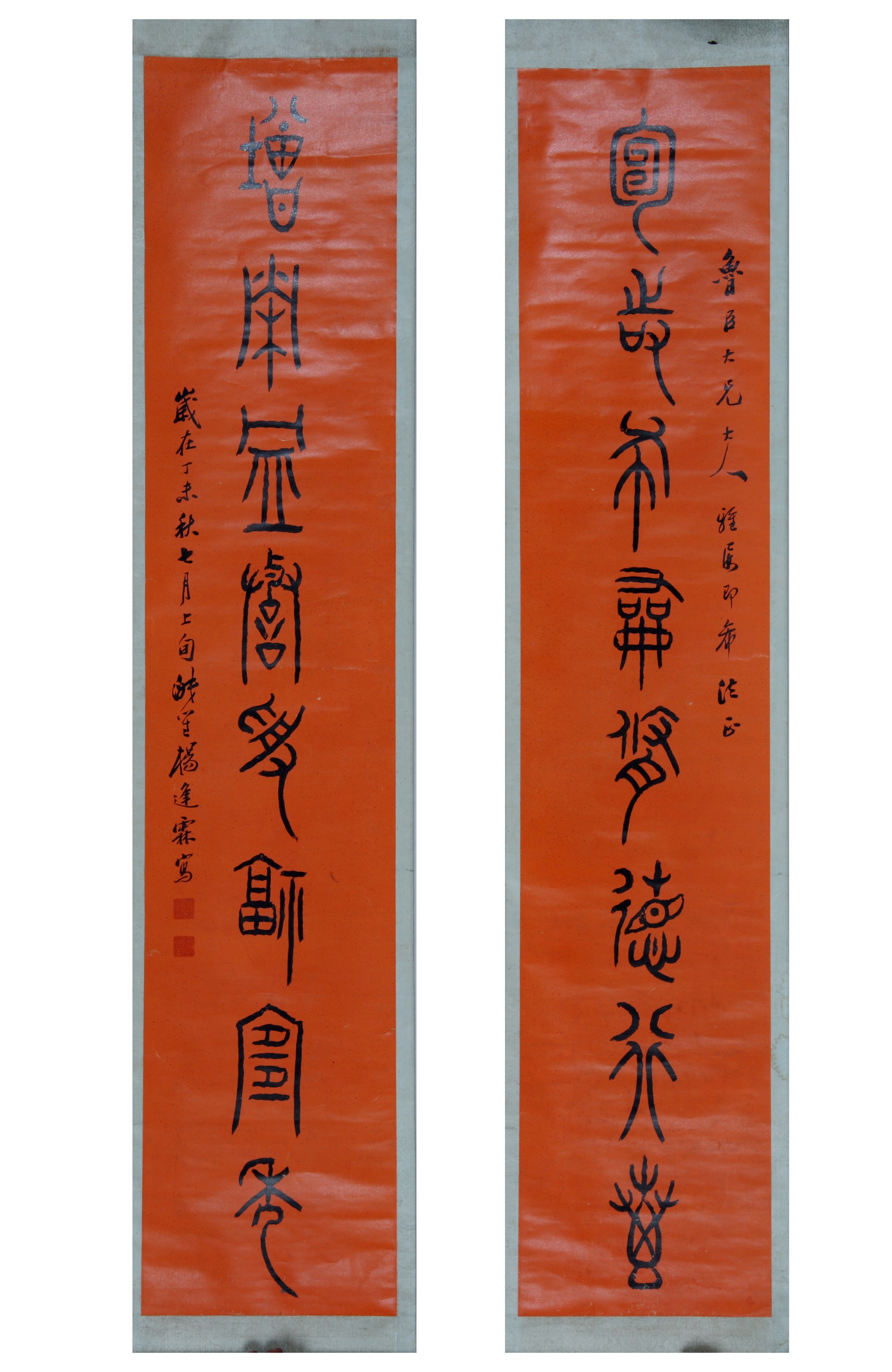 | 2689 | 清至民国丁佛言纸本籀书七言联 | 清至民国 | 通长134.5 通宽32.2 | 查看 |