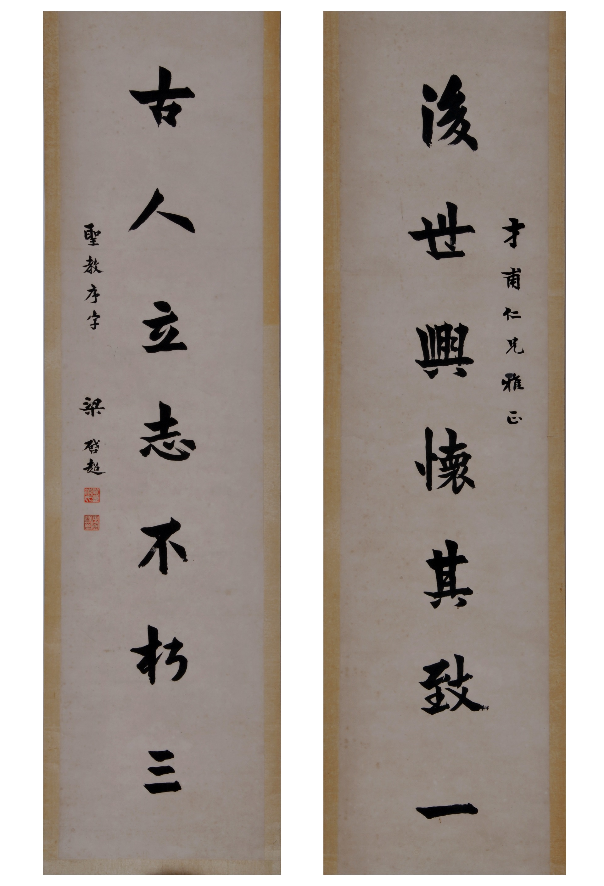 | 2706 | 清至民国梁启超纸本楷书七言联 | 清至民国 | 通长131.5 通宽31 | 查看 |