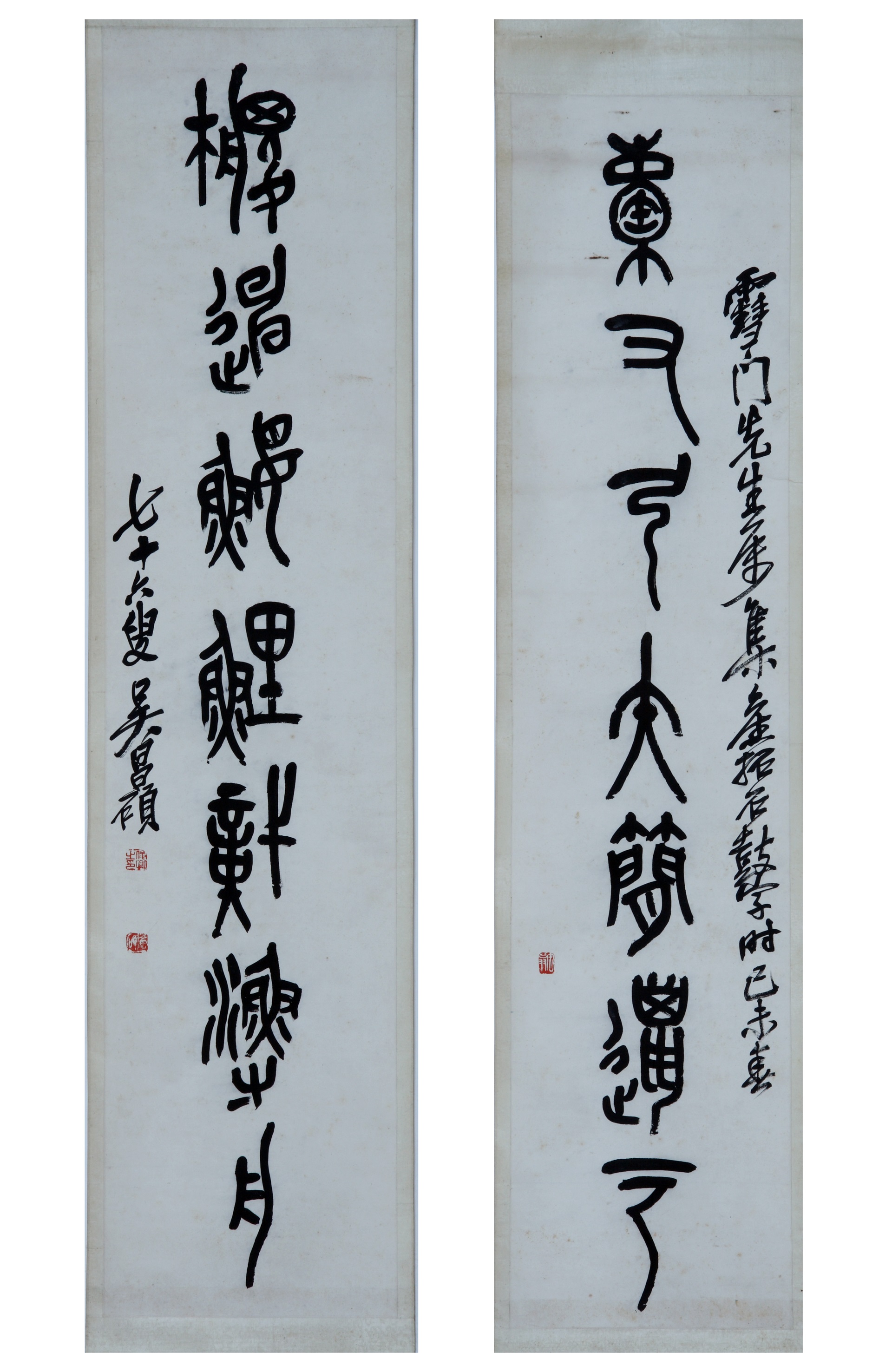 | 2735 | 清至民国吴昌硕纸本篆书七言联 | 清至民国 | 通长130 通宽30 | 查看 |