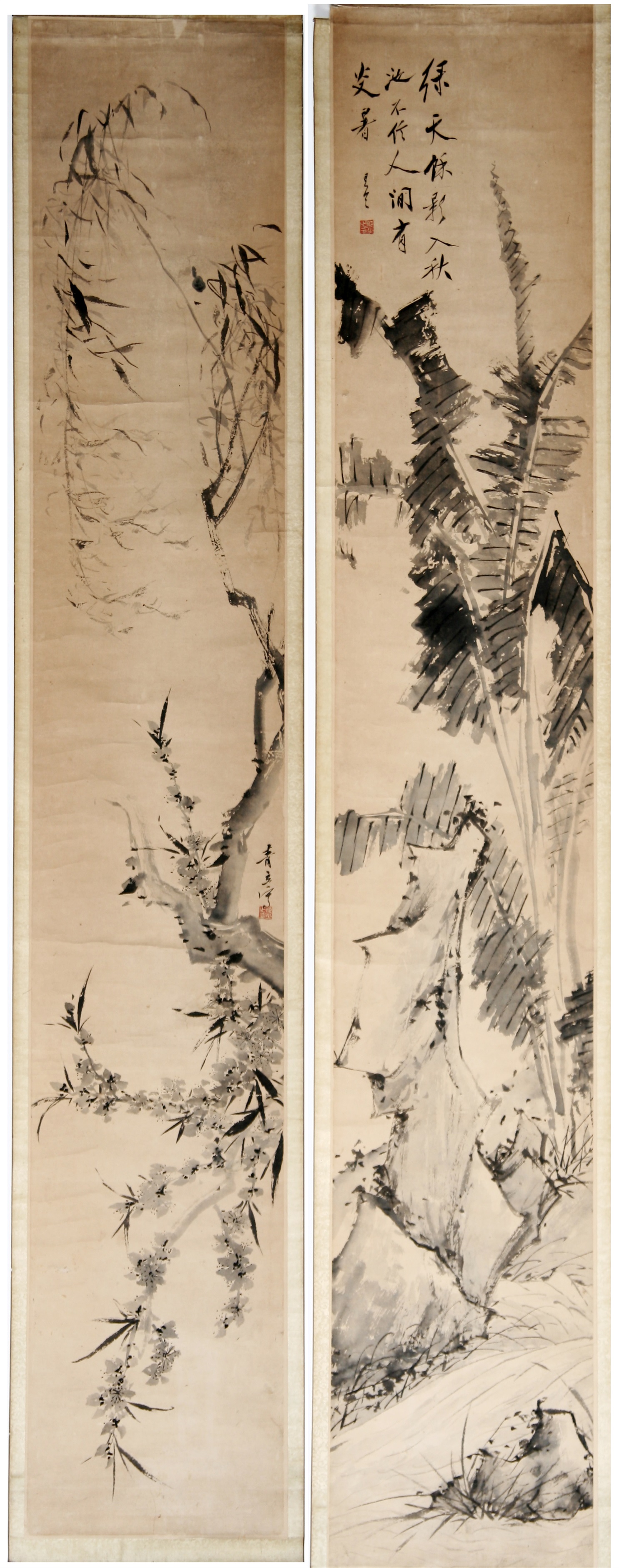 | 377 | 清朱青立纸本墨笔芭蕉桃柳屏 | 清 | 通长174.5 通宽29.5 | 查看 |