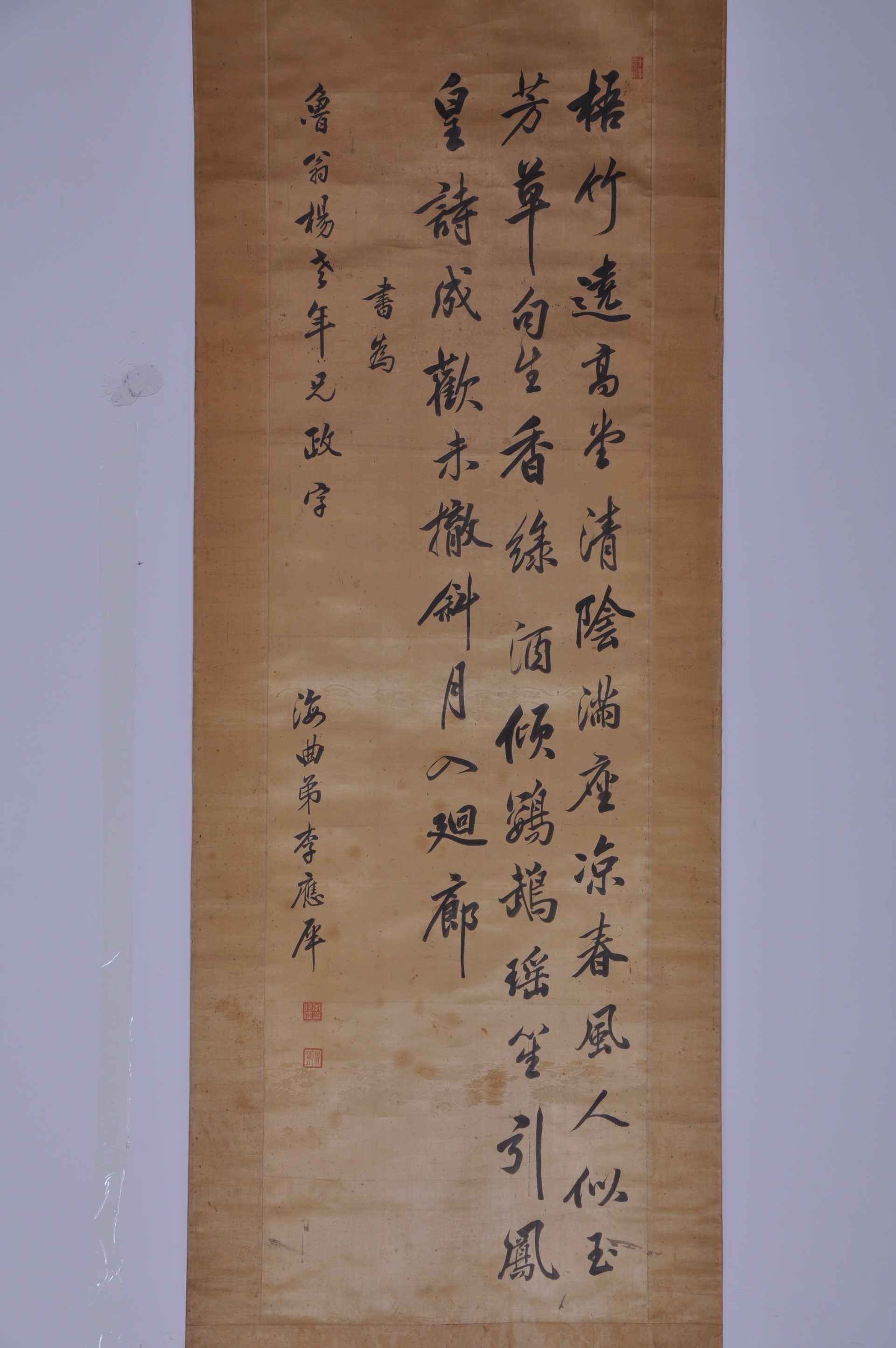 | 541 | 清李应犀绫本行书五言诗轴 | 清 | 通长161 通宽46 | 查看 |