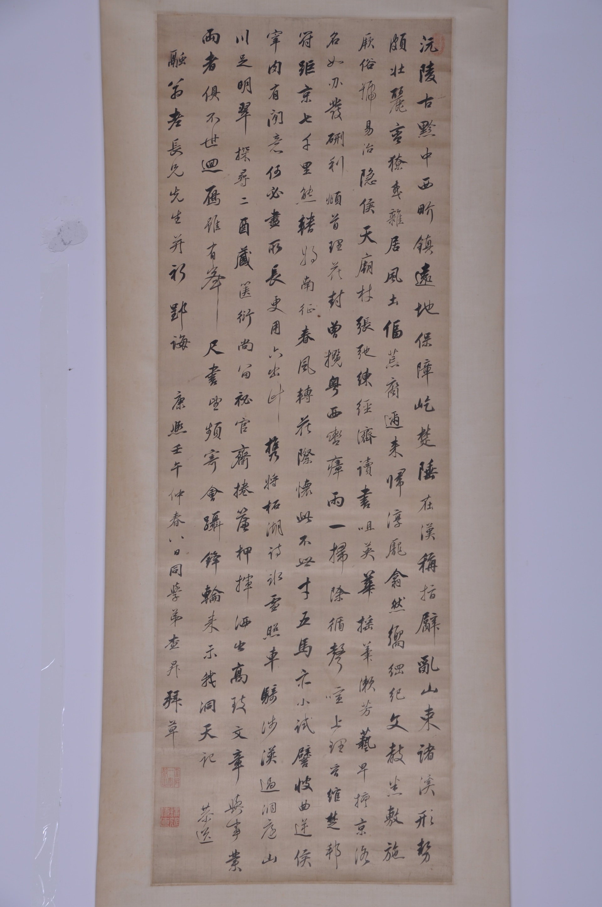 | 542 | 清康熙四十一年查昇绫本行书五言诗轴 | 清 | 通长137.5 通宽47.3 | 查看 |