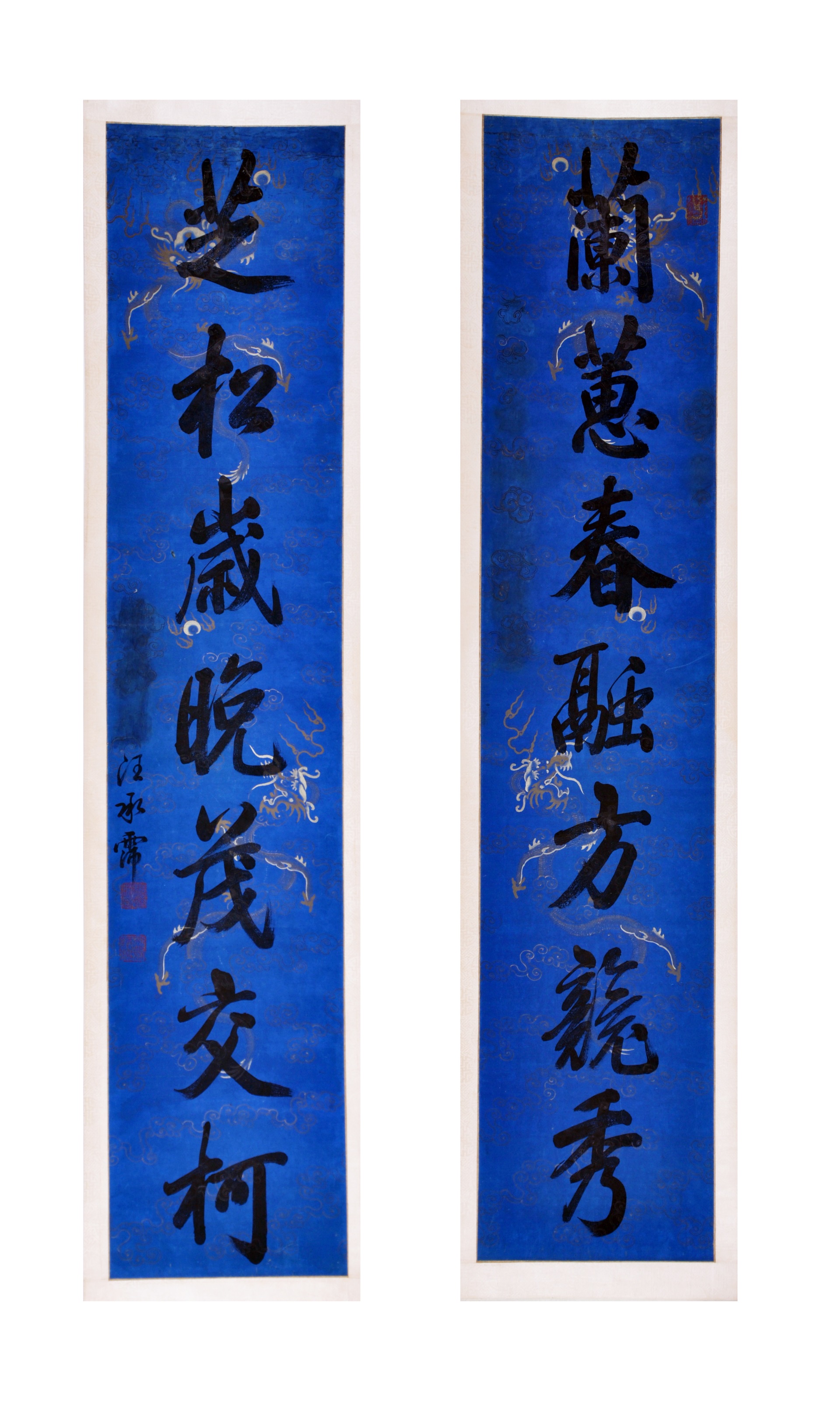 | 623 | 清汪承霈蓝贡纸本行书七言联 | 清 | 通长130 通宽26.8 | 查看 |