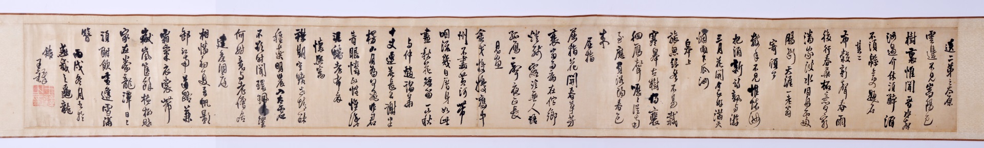 | 653 | 清顺治三年王铎绫本行书卷 | 清 | 通长24.5 通宽222.5 | 查看 |