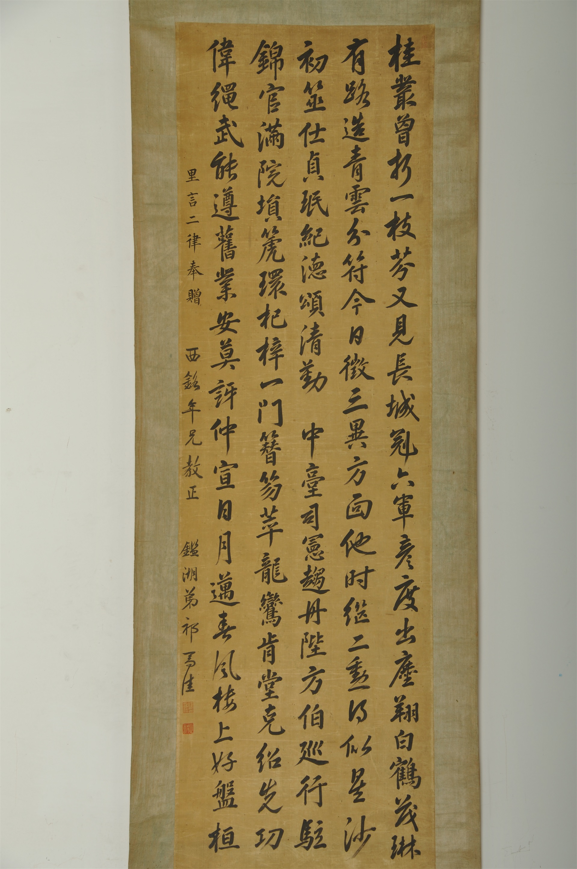| 829 | 明王勖绫本行书诗轴 | 明 | 通长199.3 通宽47 | 查看 |