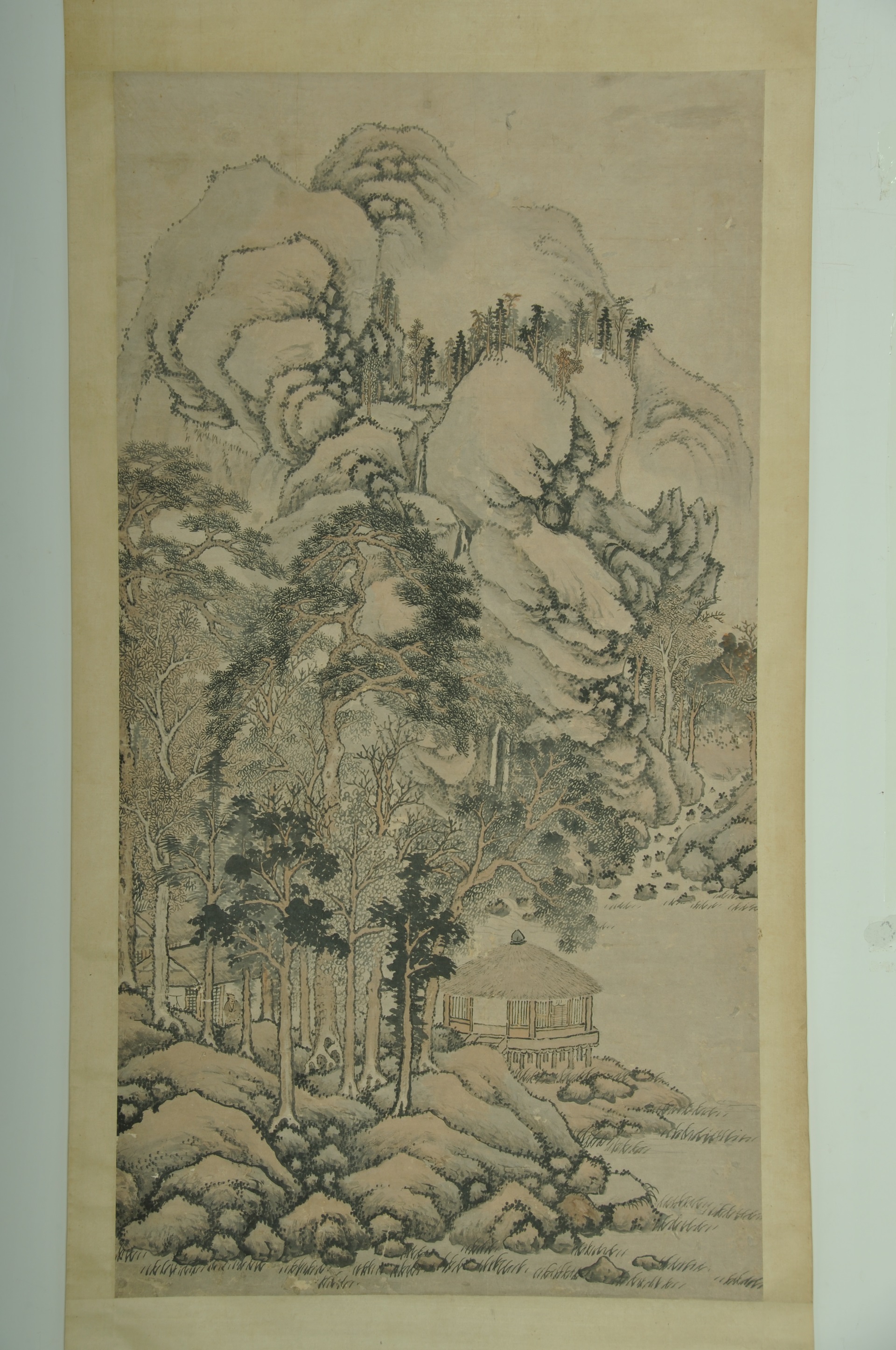 | 853 | 清无款纸本淡着色山水中堂 | 清 | 通长189.5 通宽102 | 查看 |