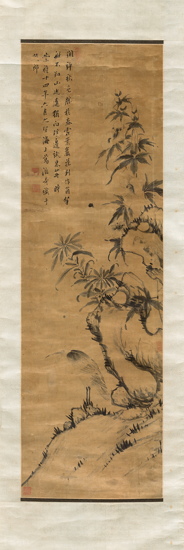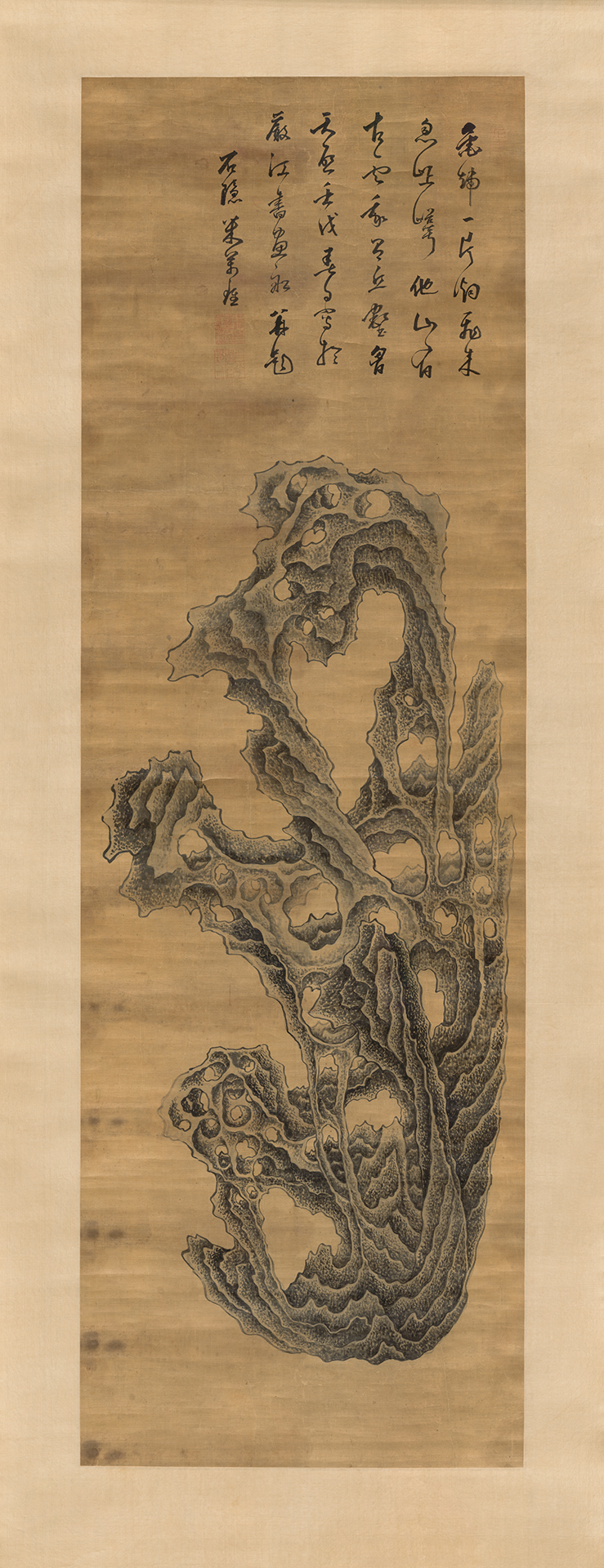 | 76 | 明米万钟绫本墨笔怪石图轴 | 明 | 通长166 通宽53 | 查看 |