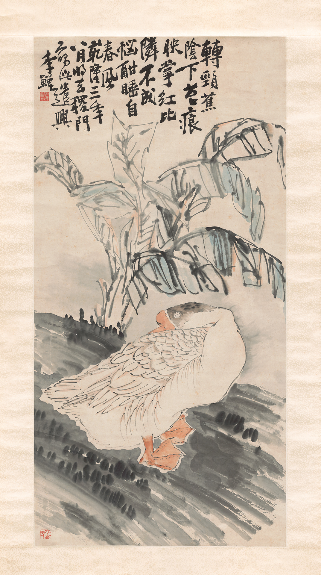 | 79 | 清乾隆三年李鱓纸本设色蕉隂鹅睡图轴 | 清 | 通长121 通宽60.5 | 查看 |