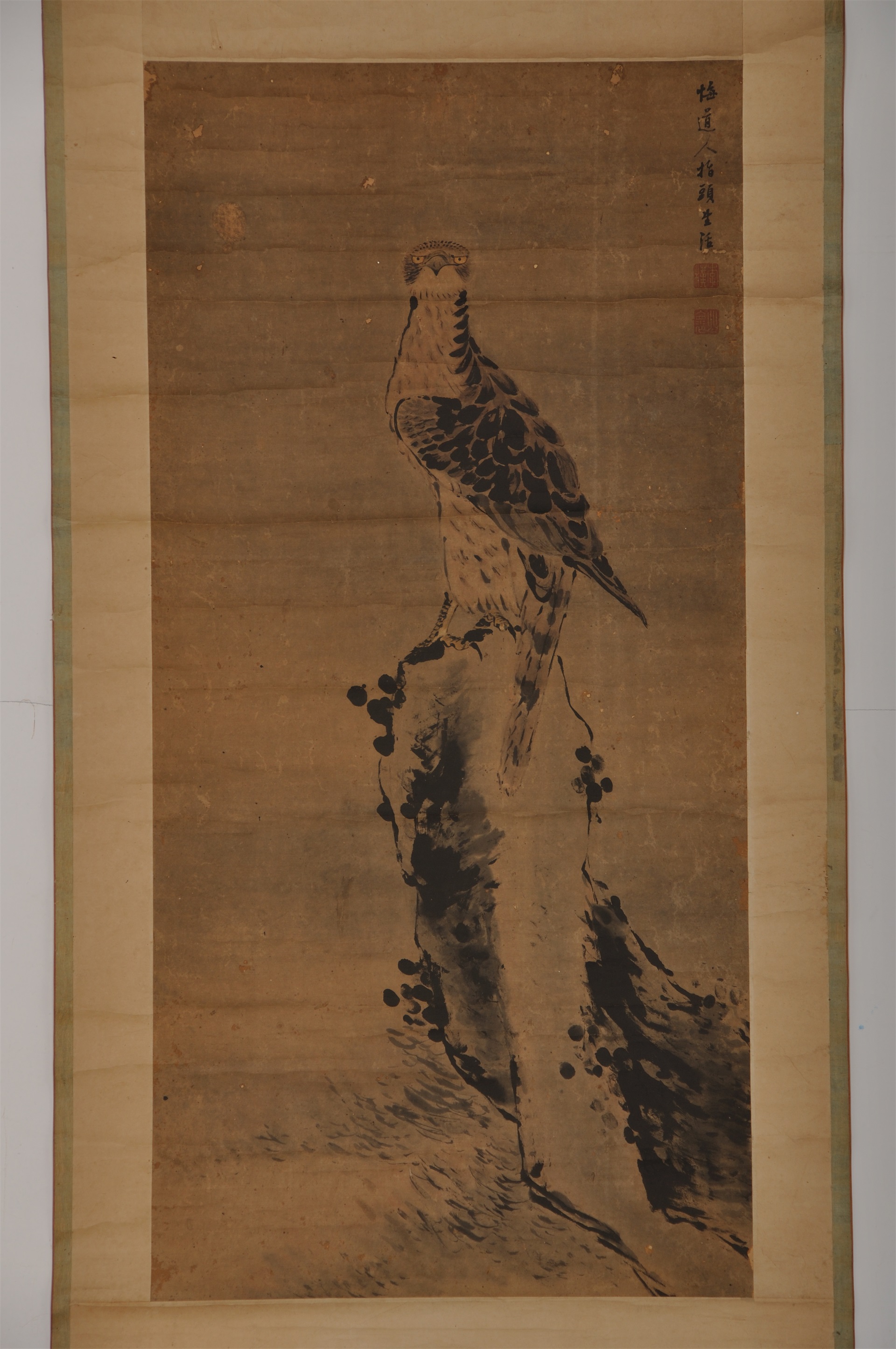 | 931 | 清悔道人纸本墨笔指画鹰立轴 | 清 | 通长11 通宽56.5 | 查看 |