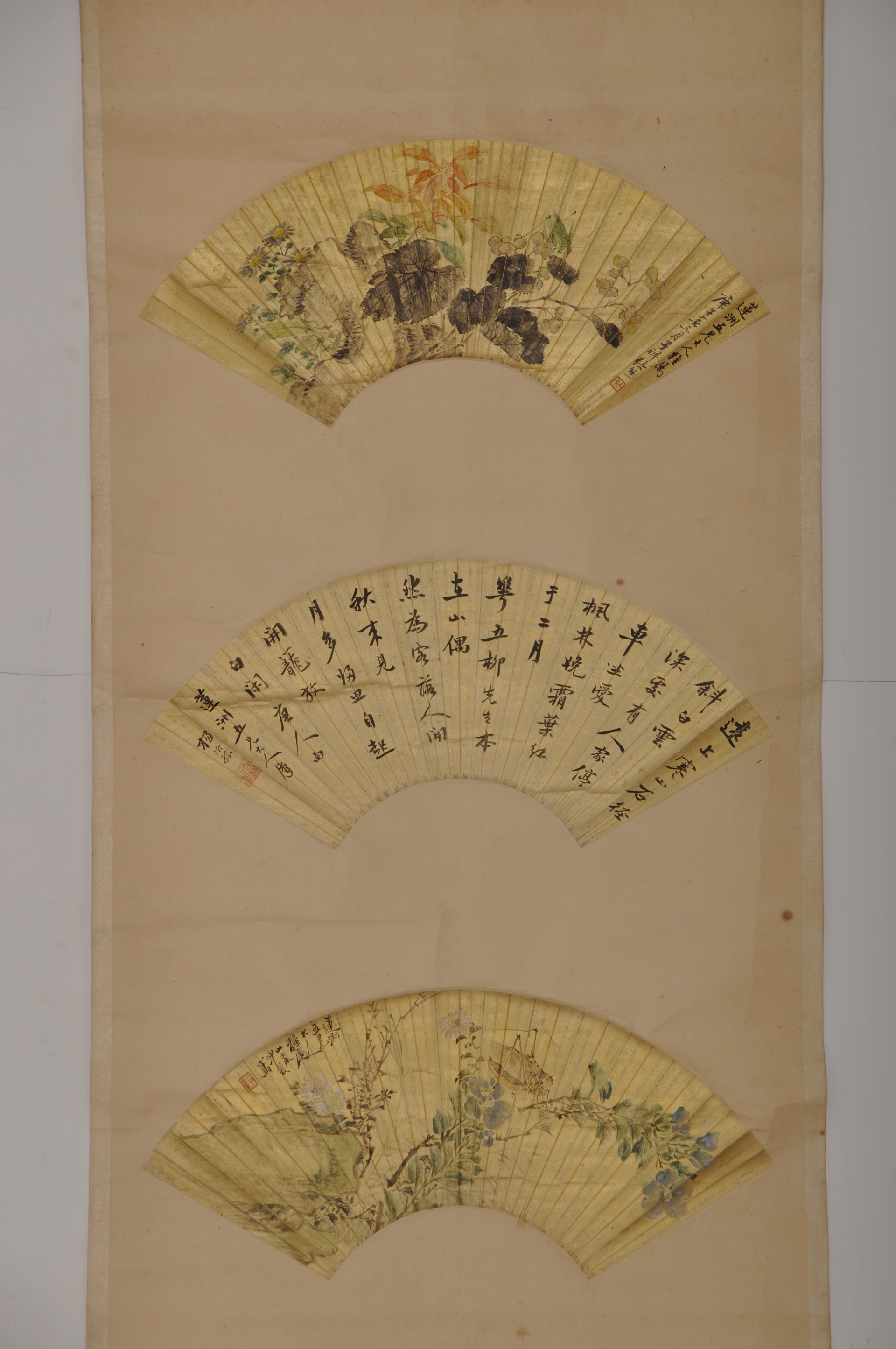 | 1056 | 清张熊纸本泥金花卉扇面、杨沂孙纸本泥金行书扇面、沙馥纸本泥金花卉扇面合装立轴 | 清 | 通长52 通宽52.3 | 查看 |