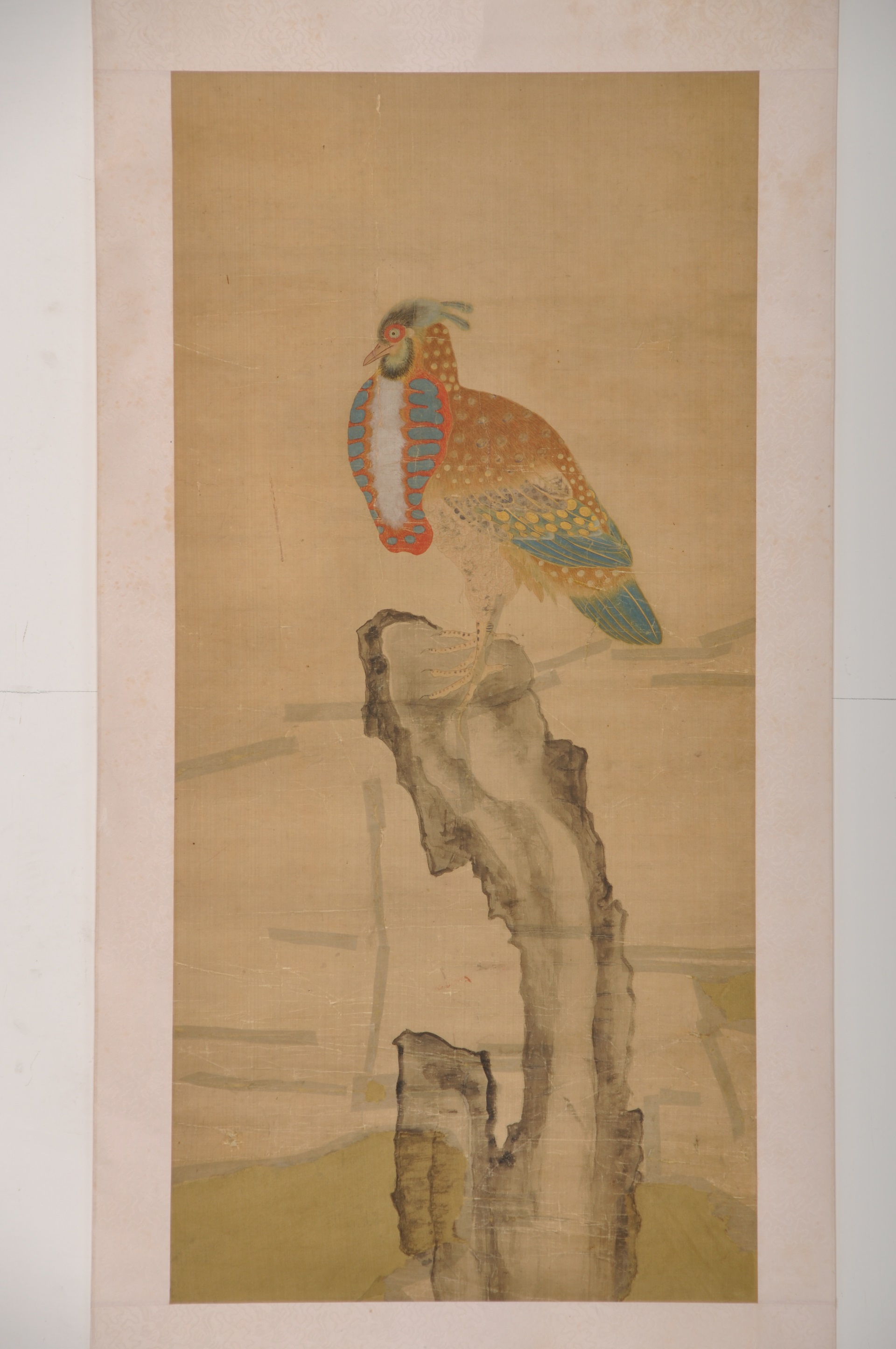 | 1065 | 清无款绢本设色石鸟立轴 | 清 | 通长99 通宽47 | 查看 |
