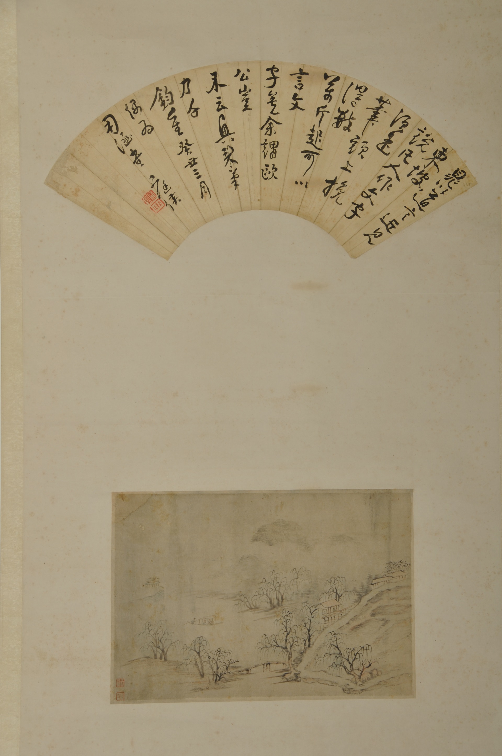 | 1107 | 清王庭侯纸本行书扇面、王唐磊纸本墨山水合装立轴 | 清 | 通长17.7 通宽52.5 | 查看 |